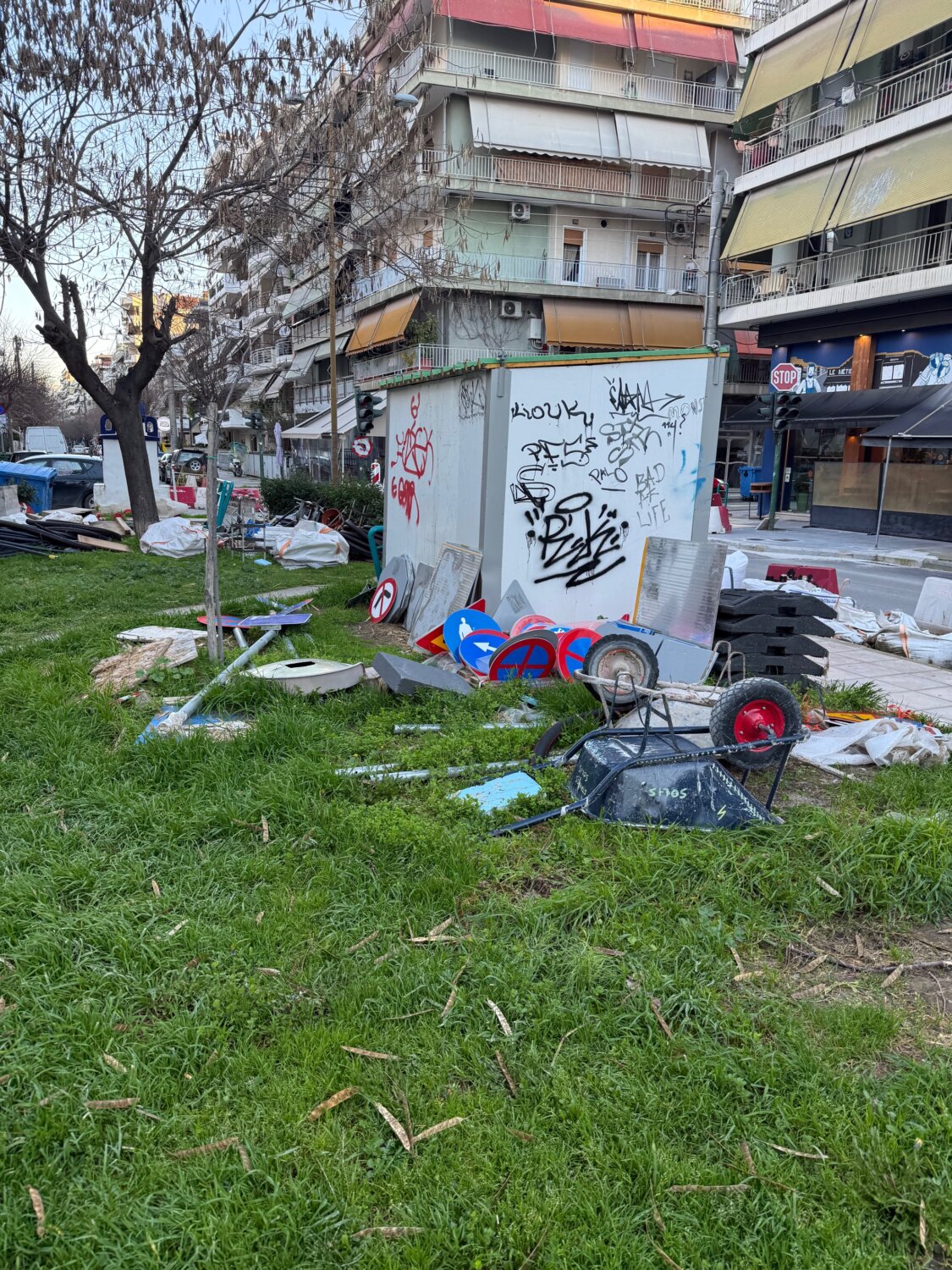 Συνάμα κάνει ειδική αναφορά στον εργολάβο, επισημαίνοντας τα εξής: «Κοιτάξτε πως έχει παρατήσει τα παρελκόμενα στην πλατεία χωρίς να τα ασφαλίσει από παιδιά και από τον χθεσινό βραδινό αέρα. Όταν θα γίνει το σοβαρό ατύχημα θα λένε δεν ξέρανε δεν είδανε».