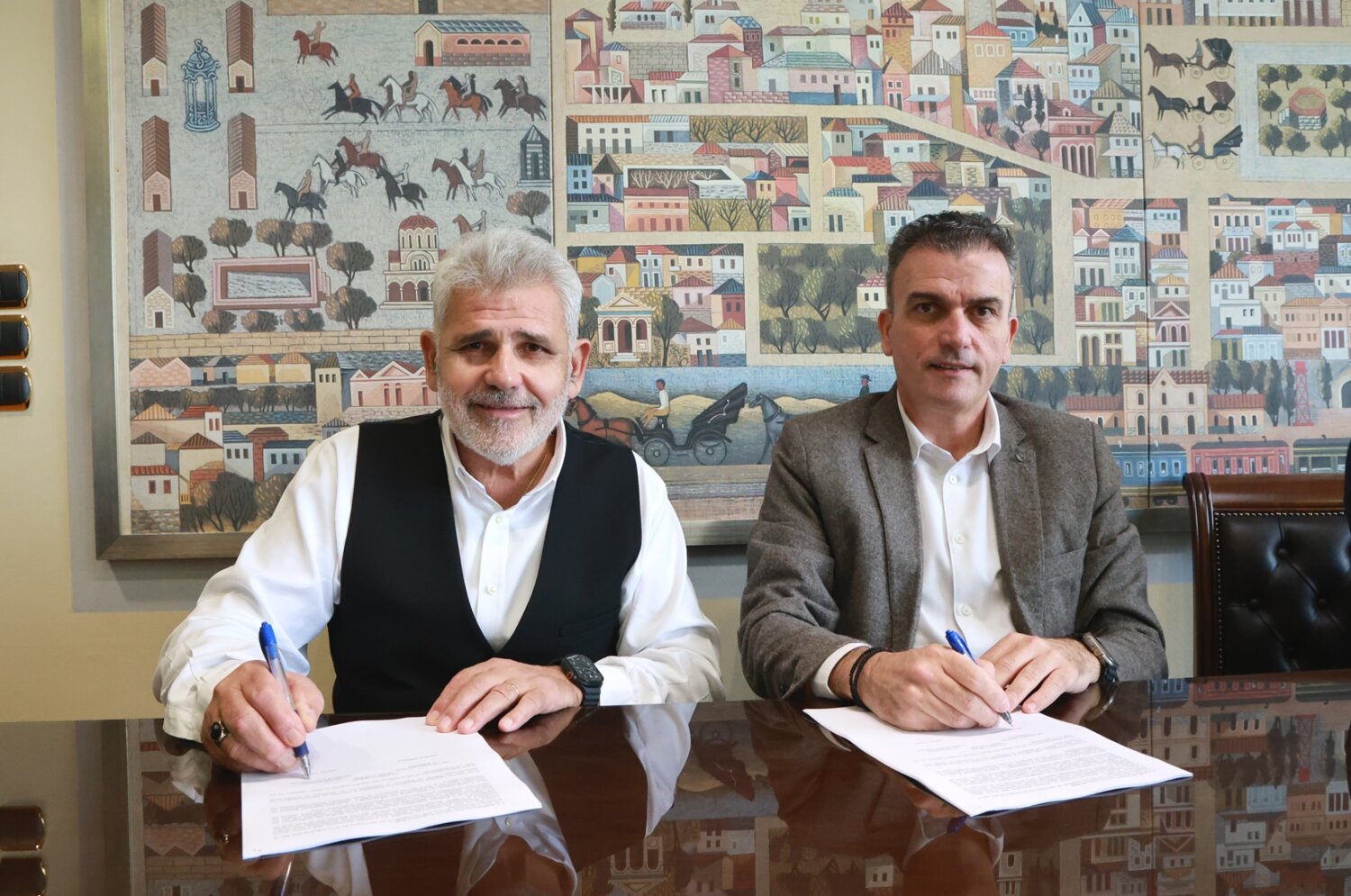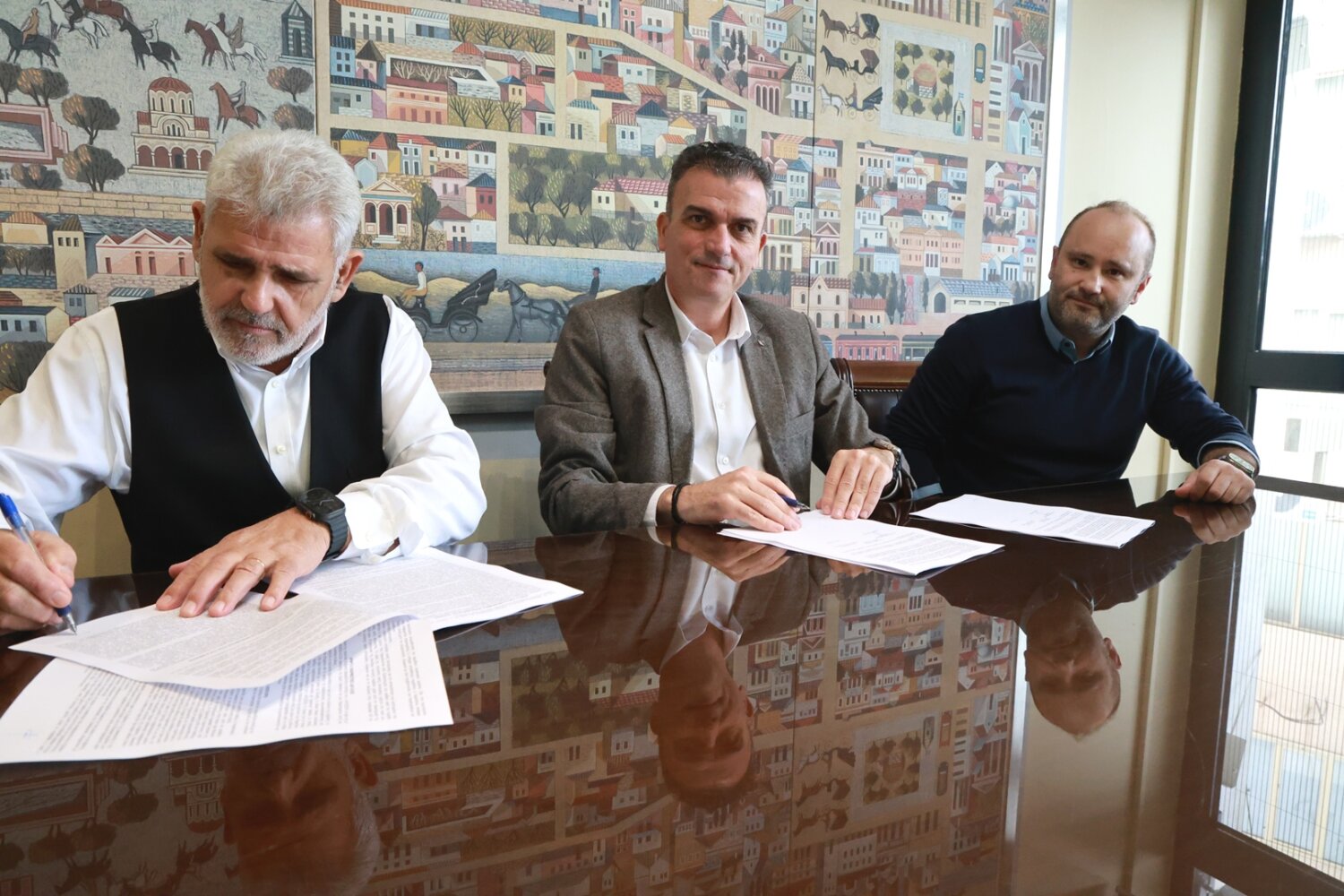 Τη σύμβαση υπέγραψαν εκ μέρους της αναδόχου εταιρείας ο πρόεδρος και διευθύνων σύμβουλος, κ.Ιωάννης Τόλιου και εκ μέρους της Δημοτικής Αρχής ο Δήμαρχος Λαρισαίων, κ.Θανάσης Μαμάκος, παρουσία του Αντιδημάρχου Τεχνικών Υπηρεσιών, κ.Χρήστου Τερζούδη και του Προϊσταμένου της Διεύθυνσης Τ.Υ., κ.Αθανάσιου Πατσιούρα και του διευθυντή Τεχνικών Έργων της ΤΕΔΡΑ, κ.Χρήστου Καφφέ.