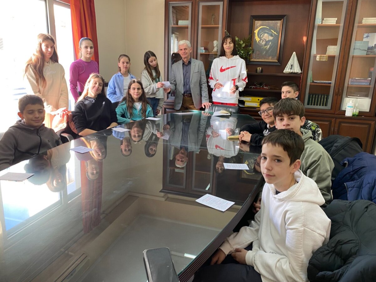 Ο Αν. Διευθυντής Δευτεροβάθμιας Εκπαίδευσης Λάρισας, κ. Νικόλαος Ζέρβας είχε τη χαρά να δεχτεί σήμερα στο Γραφείο του μαθητές/τριες της Α΄ τάξης του Πρότυπου Γυμνασίου Λάρισας με τη συνοδεία της υπεύθυνης εκπαιδευτικού φυσικής αγωγής κ. Π. Ξενοπούλου, στο πλαίσιο δράσης που εκπονούν σχετικά με τα οφέλη της άσκησης και της φυσικής κατάστασης στην υγεία και τη ζωή του ανθρώπου.