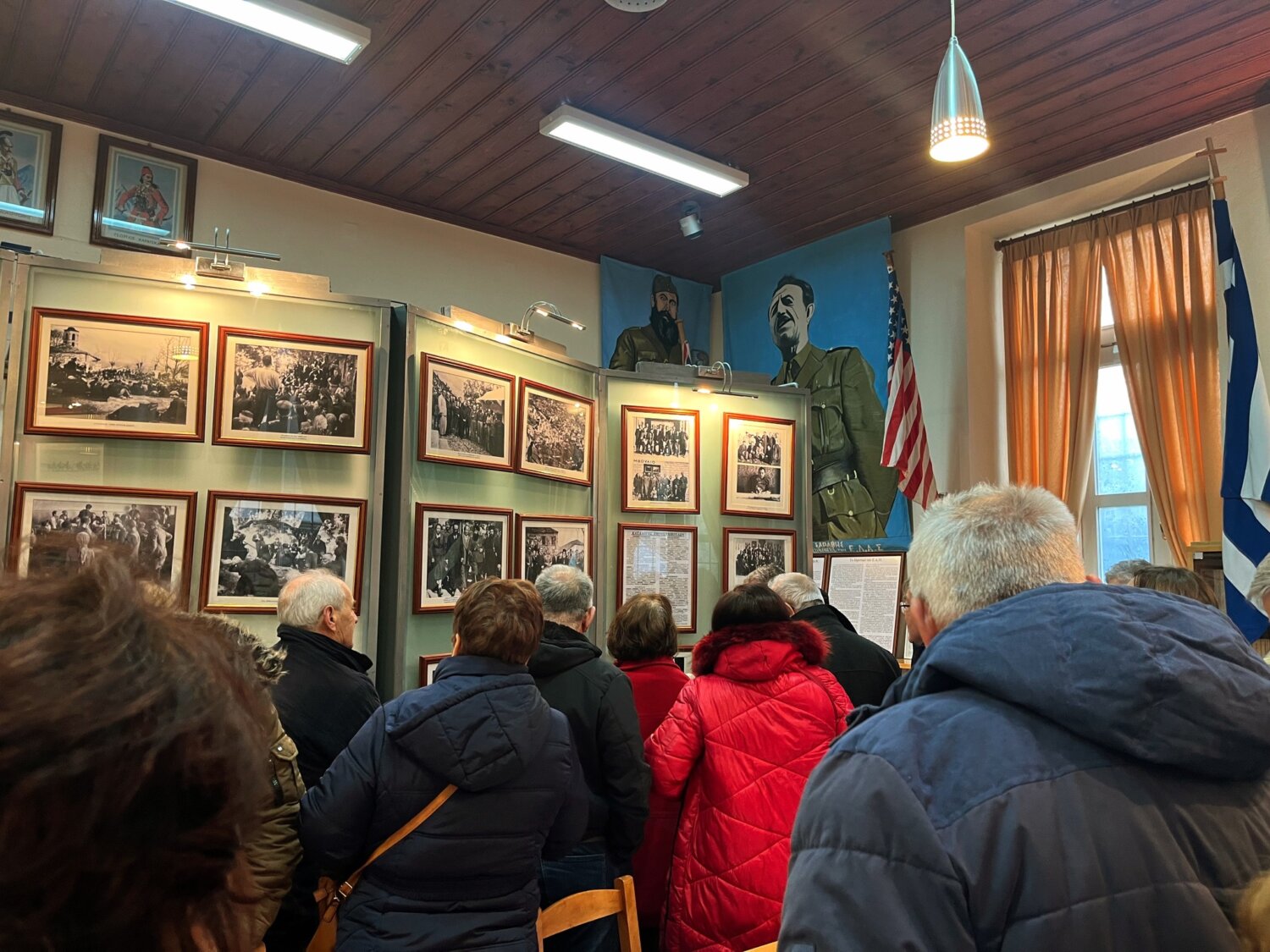 Ο Πρόεδρος του Μουσείου Εθνικής Αντίστασης Ρεντίνας, Ευάγγελος Γώγουλος, ο Αντιπρόεδρος Ιωάννης Αυγέρος και ο ξεναγός Παύλος Σταύρου υποδέχτηκαν τα μέλη του Συλλόγου στον χώρο του Μουσείου και τους ξενάγησαν στους χώρους της έκθεσης.