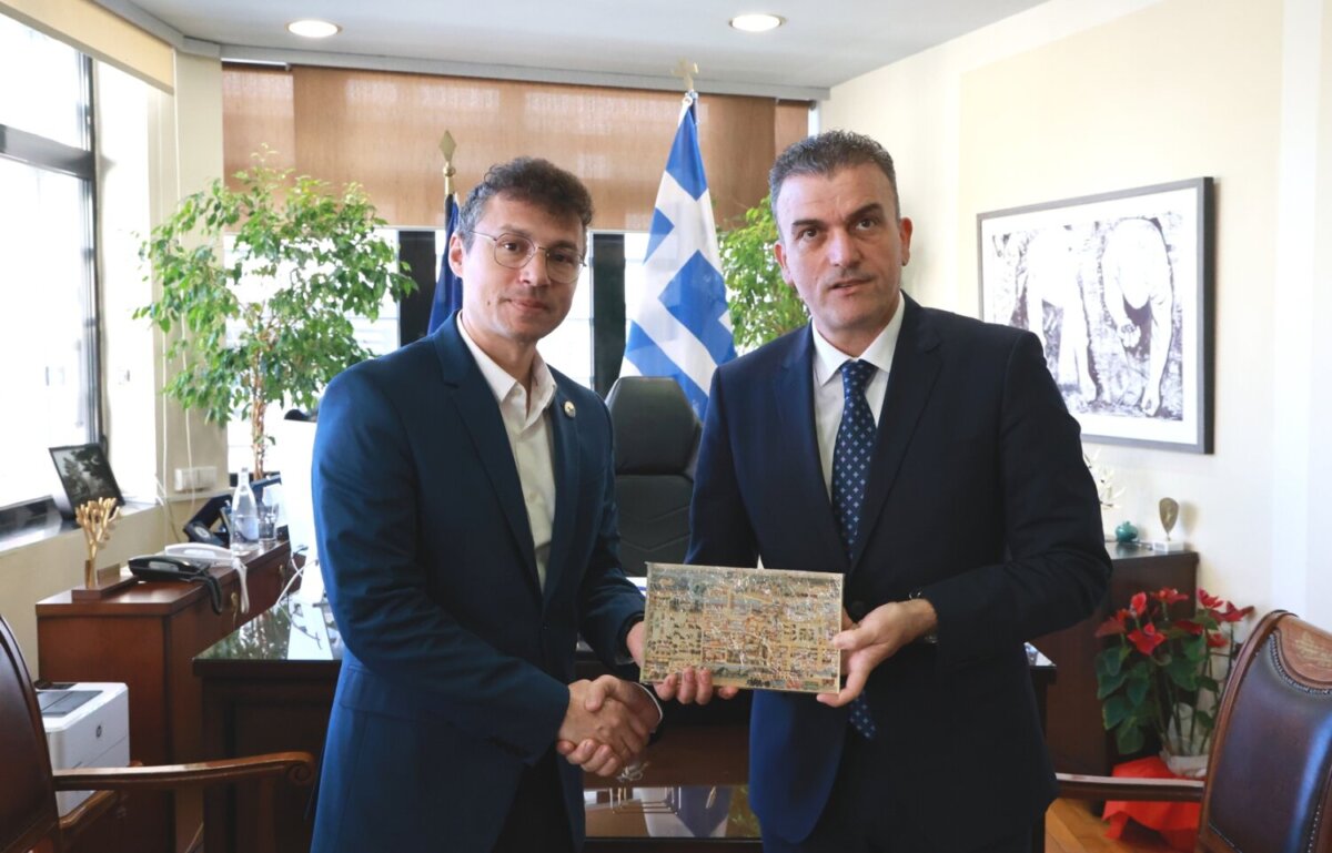 Τον Δήμαρχο Μάνδρας-Ειδυλλίας, κ.Αρμόδιο Δρίκο υποδέχθηκε ο Δήμαρχος Λαρισαίων, κ.Θανάσης Μαμάκος, νωρίτερα το πρωί της Τετάρτης, στο Δημαρχείο της Λάρισας.