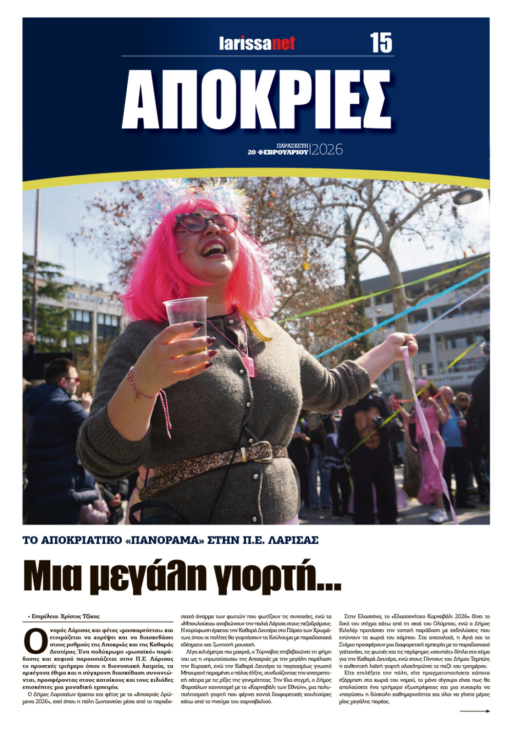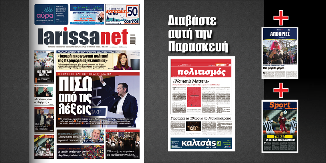 Ρεπορτάζ, άρθρα, συνεντεύξεις και όλο το παρασκήνιο της εβδομάδας στο νέο φύλλο της larissanet.