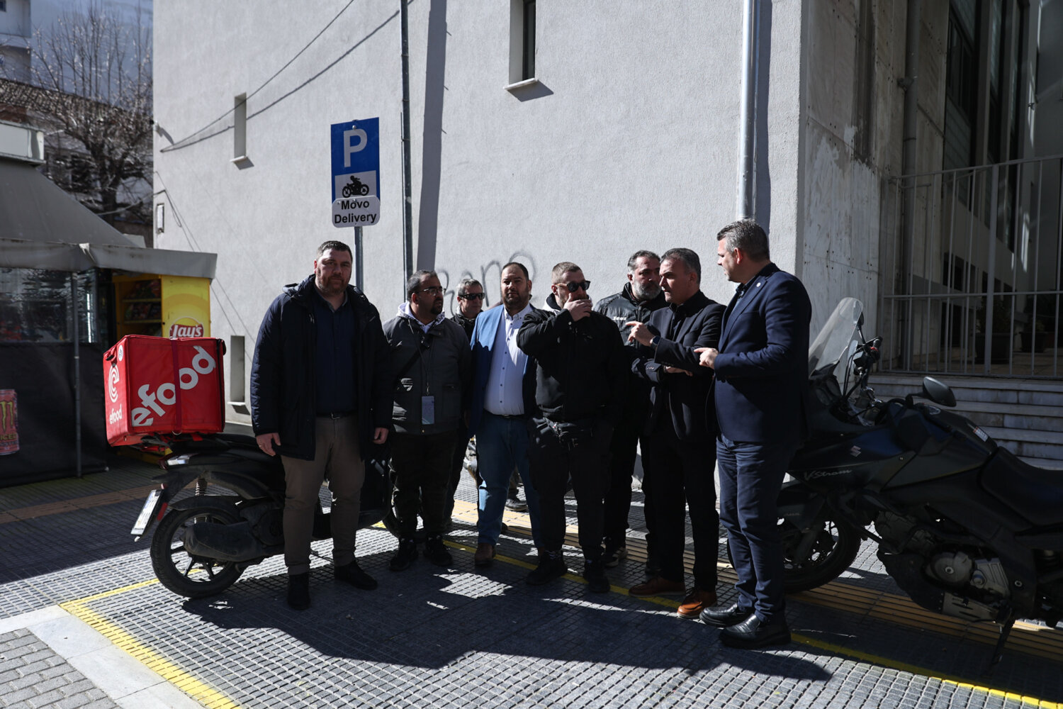 «Σήμερα κάνουμε ακόμα βήμα για την βελτίωση της καθημερινότητας των πολιτών», ανέφερε ο δήμαρχος Λαρισαίων, Θανάσης Μαμάκος, μπροστά από τις ειδικές θέσεις στάθμευσης δικύκλων delivery στην Κεντρική Πλατεία. Ο ίδιος μαζί με τον πρώην και νυν αντιδήμαρχο Δημοτικής Αστυνομίας και Κυκλοφοριακών Παρεμβάσεων, Ευάγγελο Παπαλέξη και Κώστα Αργυρόπουλο, αλλά και τους ανθρώπους του κλάδου «εγκαινίασαν» το ένα από τα δεκαεννέα σημεία που αναμένεται να «φιλοξενούν» τα οχήματα των επαγγελματιών.