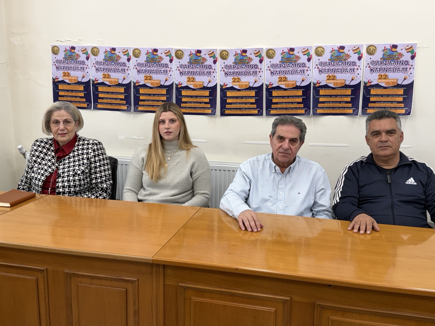 Για την διοργάνωση παραχώρησαν το πρωί της Πέμπτης συνέντευξη τύπου ο Δήμαρχος Φαρσάλων κ. Μάκης Εσκίογλου, η αντιδήμαρχος και πρόεδρος της Οργανωτικής Επιτροπής του Καρναβαλιού κ. Σοφία Χατζηπλή, ο αντιδήμαρχος Πολιτισμού και Αθλητισμού κ. Γιάννης Βασιλείου, η φετινή βασίλισσα του Καρναβαλιού κ. Αναστασία Κόκκαλη και τα μέλη της Οργανωτικής Επιτροπής κ.κ. Ντίνος Βαρακλιώτης, Δημήτρης Πατσιούρας, Φωτεινή Πιτσιάβα, Άννα Φλωρά και Γκέλυ Ζάμπαλου.