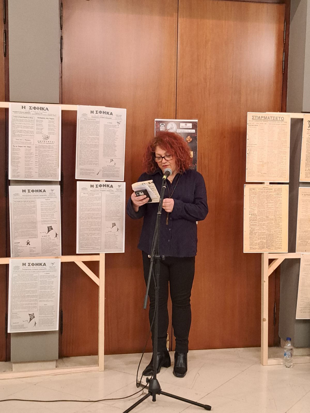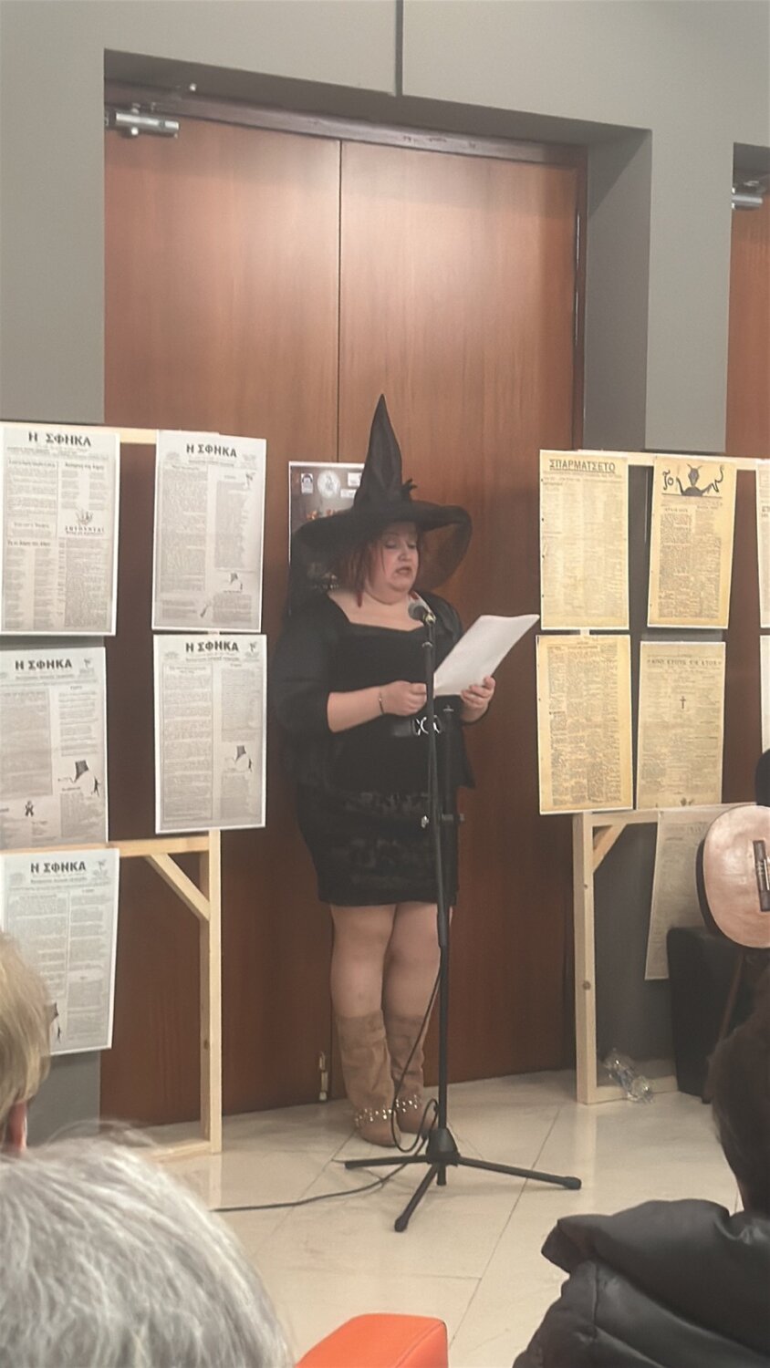 Η κ. Σοφία Βακιρτζηδέλη, Προϊσταμένη των Γενικών Αρχείων Κράτους – Τμήμα ΓΑΚ Φθιώτιδας, παρουσίασε τα σατιρικά έντυπα «Σπαρματσέτο» και «Αριστοφάνης» και επιμελήθηκε την έκθεση του αρχειακού υλικού.