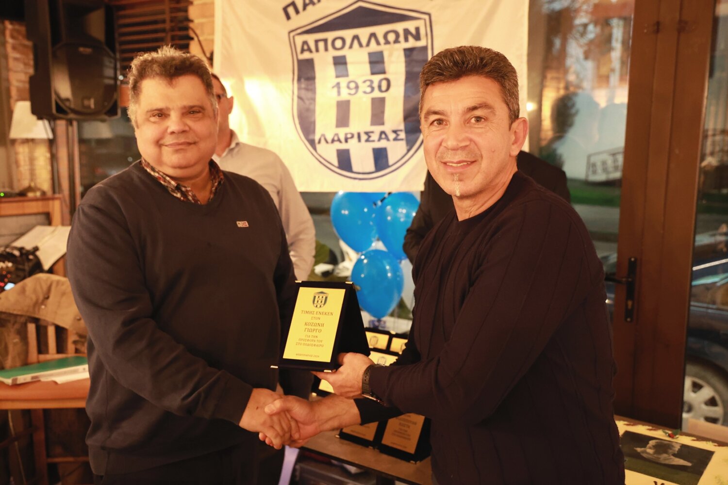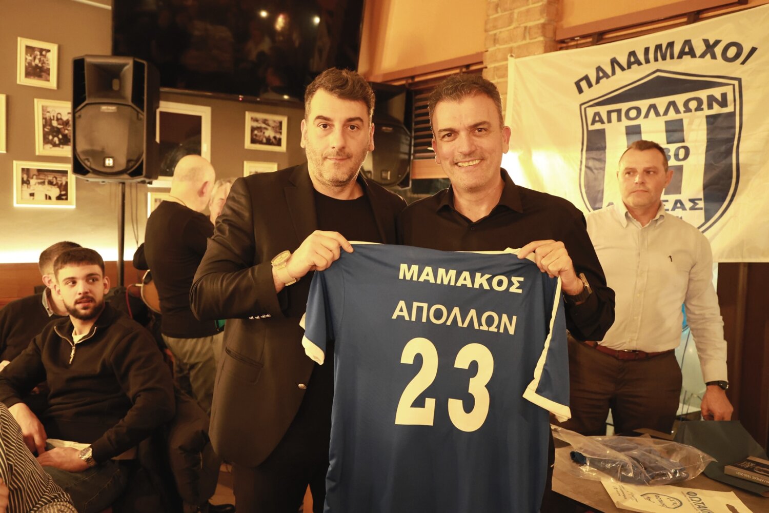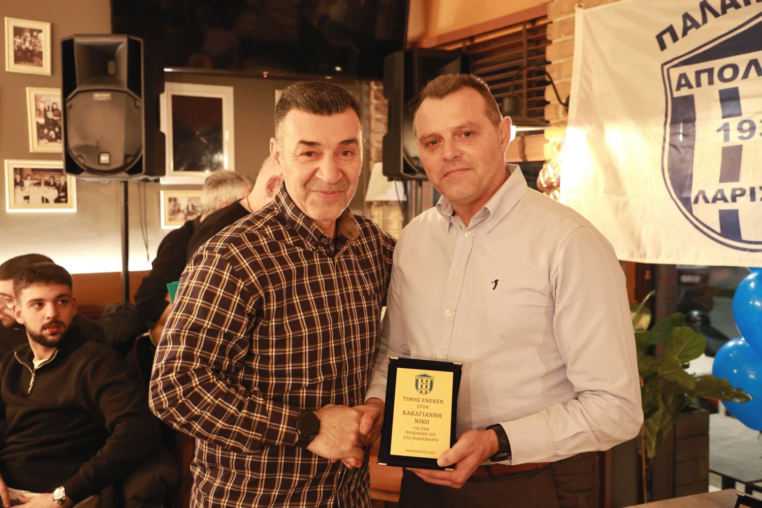 Την κοπή της πίτας των παλαιμάχων του Απόλλωνα Λάρισας τίμησε επίσης ο Δήμαρχος Λαρισαίων κ. Θανάσης Μαμάκος. Από μεριάς τους, οι παλαίμαχοι της ομάδας της Φιλιππούπολης του απένειμαν φανέλα με το όνομά του και το βιβλίο του συλλόγου, που αποτελεί και τη ζωντανή ιστορία.