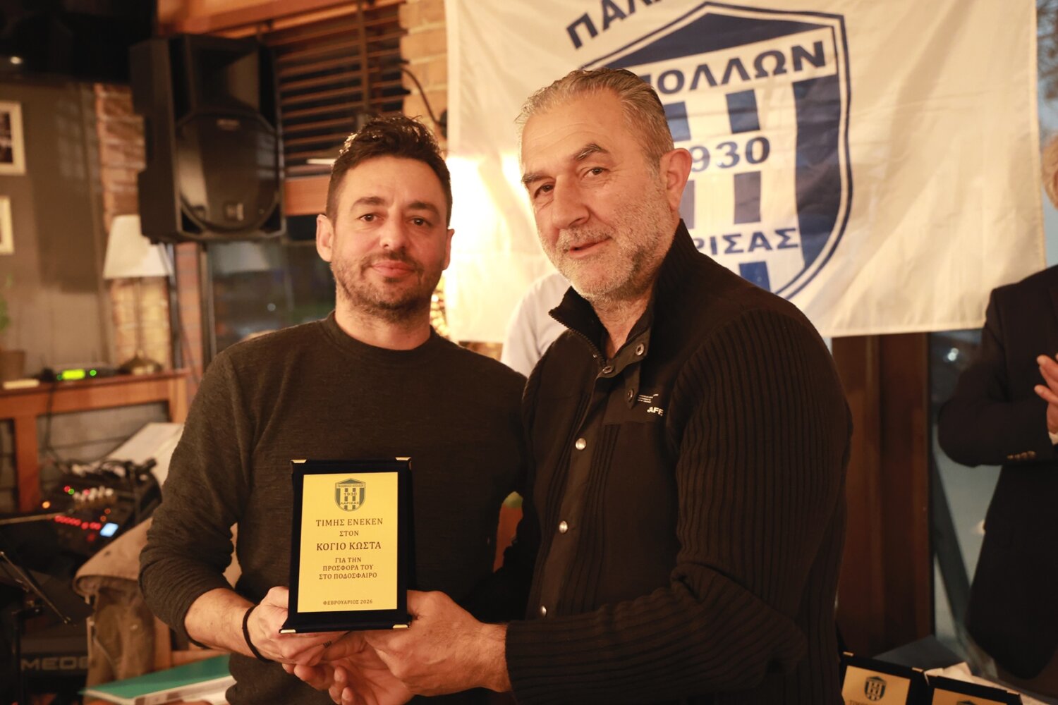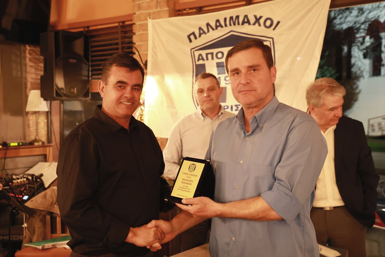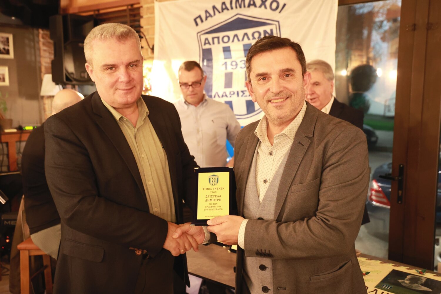Την κοπή της πίτας των παλαιμάχων του Απόλλωνα Λάρισας τίμησε επίσης ο Δήμαρχος Λαρισαίων κ. Θανάσης Μαμάκος. Από μεριάς τους, οι παλαίμαχοι της ομάδας της Φιλιππούπολης του απένειμαν φανέλα με το όνομά του και το βιβλίο του συλλόγου, που αποτελεί και τη ζωντανή ιστορία.
