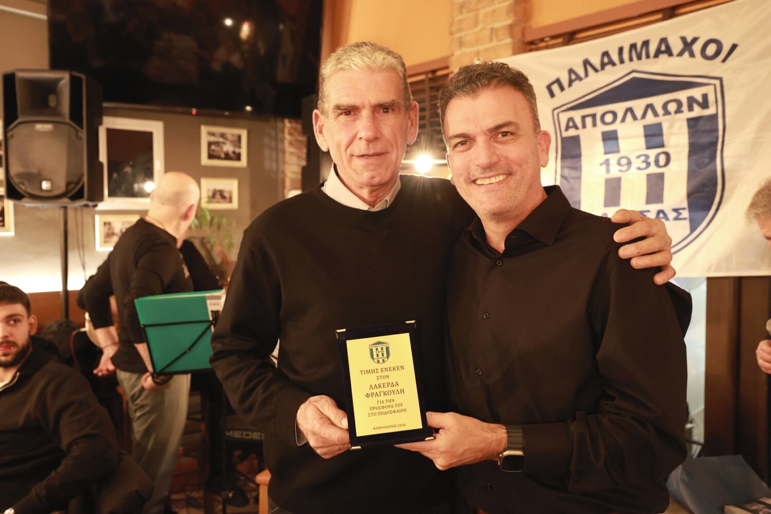 Παράλληλα, πραγματοποιήθηκαν 12 βραβεύσεις παλαιμάχων ποδοσφαιριστών, οι οποίοι με την παρουσία τους τίμησαν την ιστορική φανέλα του Απόλλωνα Λάρισας.
