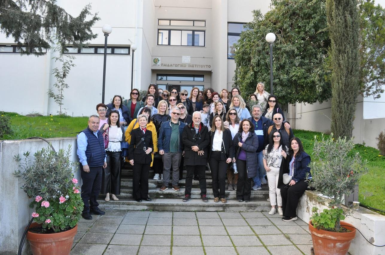 Τη Δευτέρα 9/2, πραγματοποιήθηκε επιμορφωτικό σεμινάριο στις εγκαταστάσεις του Παιδαγωγικού Ινστιτούτου Κύπρου. Τους/τις Ελλαδίτες/ισσες εκπαιδευτικούς υποδέχθηκε με θερμούς λόγους η Διευθύντρια του Παιδαγωγικού Ινστιτούτου, κ. Χατζηκακού Έλενα, αναφερόμενη στους ισχυρούς δεσμούς, οι οποίοι ενώνουν τις δύο χώρες, όπως, επίσης, και η Πρώτη Λειτουργός, κ. Χατζηθεοδούλου-Λοϊζίδου Παυλίνα.