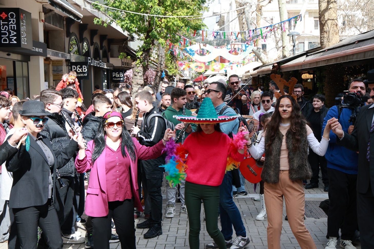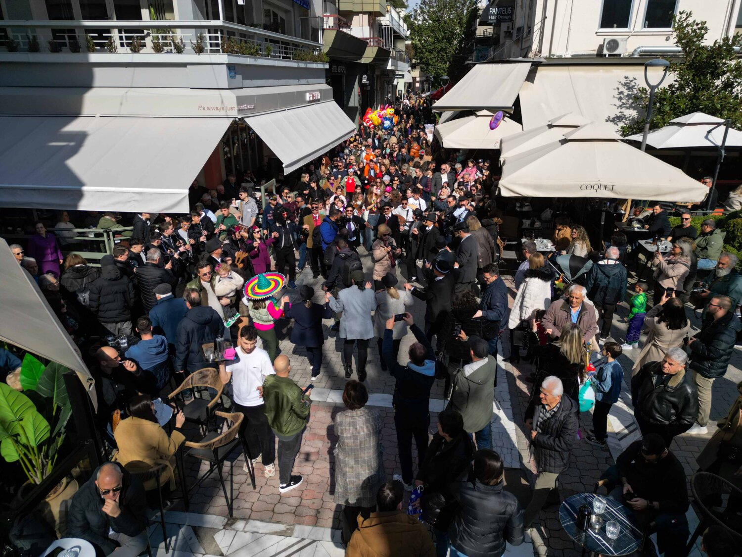 Για μια ακόμη χρονιά, το επίκεντρο της αποκριάτικης διασκέδασης ήταν η Κεντρική πλατεία της Λάρισας, όπου ο κόσμος γλέντησε με την καρδιά του, απολαμβάνοντας την εξαιρετική παρουσία του Γιάννη Λίταινα και της παρέας μουσικών της πόλης, στήνοντας χορό γύρω από το γαϊτανάκι.