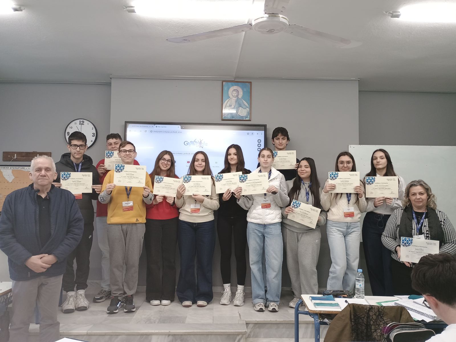 * Τους ένδεκα μαθητές και μαθήτριες του σχολείου για την άριστη εμφάνιση και παρουσία τους στους ρόλους που ανέλαβαν συνεχάρησαν θερμά, απονέμοντας και τις Βεβαιώσεις (Certificates of successful participation), ο Διευθυντής του Προτύπου ΓΕΛ Δρ. Χαράλαμπος Ανδρεόπουλος και ο Σύλλογος Διδασκόντων/-ουσών του σχολείου, με την ευχή για συνέχιση της επιτυχημένης τους πορείας στις τόσο ενδιαφέρουσες δράσεις για το χώρο – και τον κόσμο – της διπλωματίας.