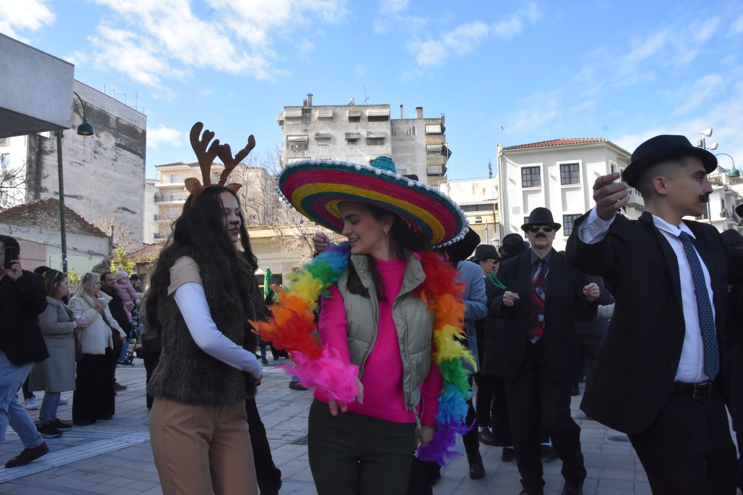 «Μπουλούκια» καρναβαλιστών, με σημείο συνάντησης το Α’ Αρχαίο Θέατρο, ξεσήκωσαν τη Λάρισα το πρωί του Σαββάτου, εκκινώντας τις εκδηλώσεις «Αποκριάς Δρώμενας», με κέφι, χορό και μουσική.