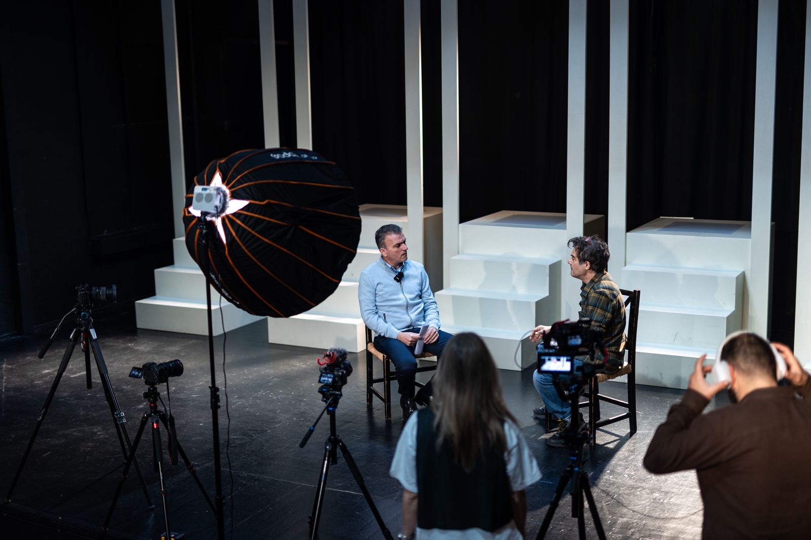 Θανάσης Μαμάκος και Γεράσιμος Γεννατάς επί σκηνής, στο Θεσσαλικό Θέατρο, σε μια ζωντανή, αποκαλυπτική συζήτηση για τα σύνορα της τέχνης και της ζωής.