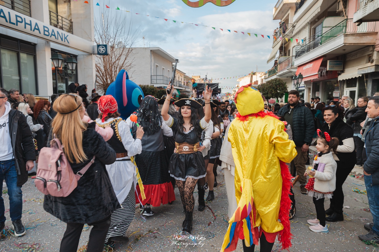 Οι πολίτες από νωρίς το μεσημέρι είχαν λάβει θέση κατά μήκος της οδού Λαρίσης για να παρακολουθήσουν τη φαντασμαγορική παρέλαση, ενώ σχολεία και ομάδες πολιτών, έδωσαν τον καλύτερό τους εαυτό δημιουργώντας ένα εντυπωσιακό και πολυπολιτισμικό σκηνικό. Εξίσου λαμπερή ήταν και η φετινή βασίλισσα του Καρναβαλιού, Αναστασία Κόκκαλη.
