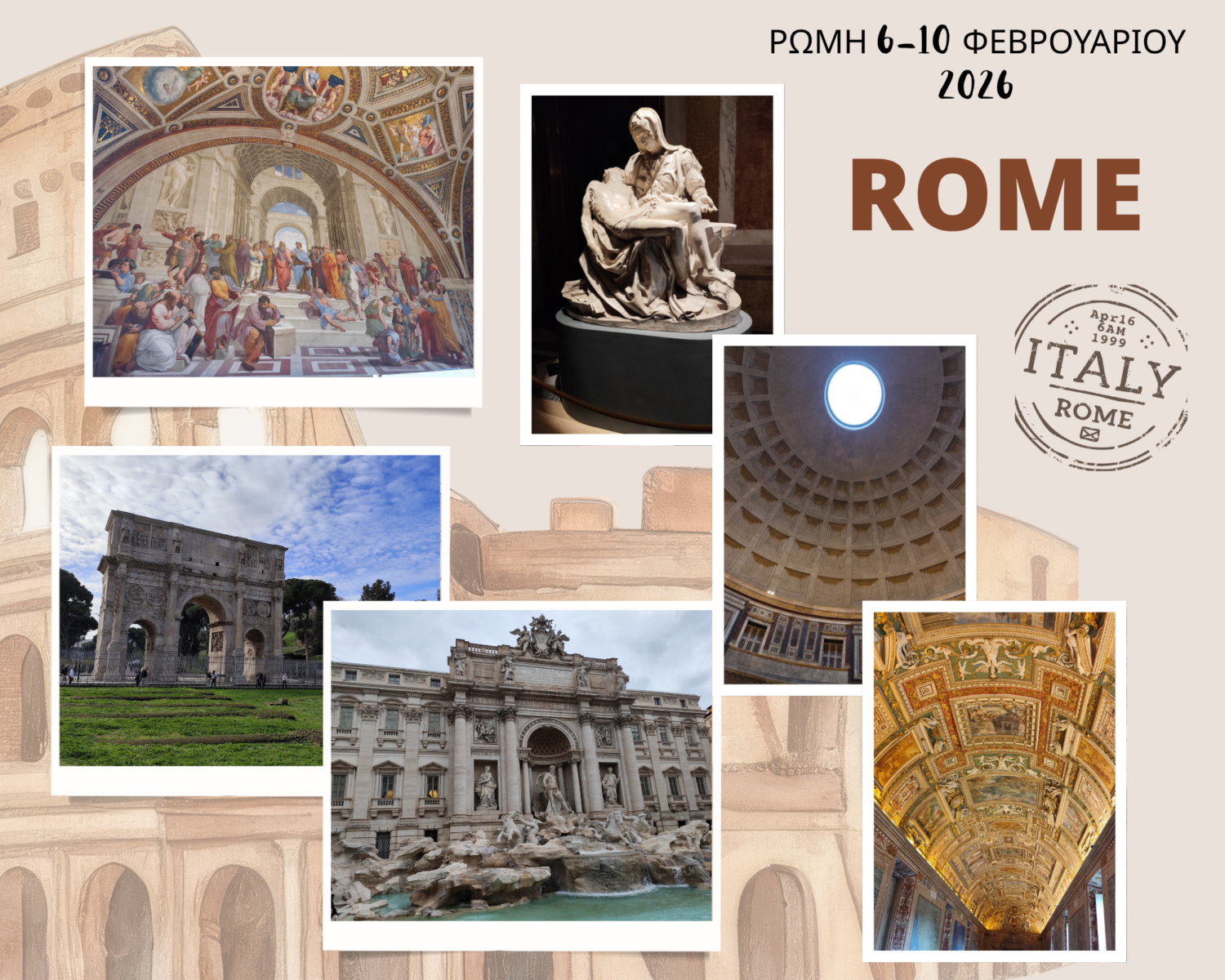 Η επίσκεψη στη Ρώμη δεν ήταν απλώς ένα ταξίδι σ’ έναν δημοφιλή τουριστικό προορισμό. Ήταν για τους μαθητές μας ένα βιωματικό μάθημα ιστορίας, ένα ταξίδι στο χρόνο και τον πολιτισμό, μια γνωριμία με την αιώνια ομορφιά μια πόλης που εμπνέει , που μαγεύει, που σε περιμένει ξανά και ξανά.
