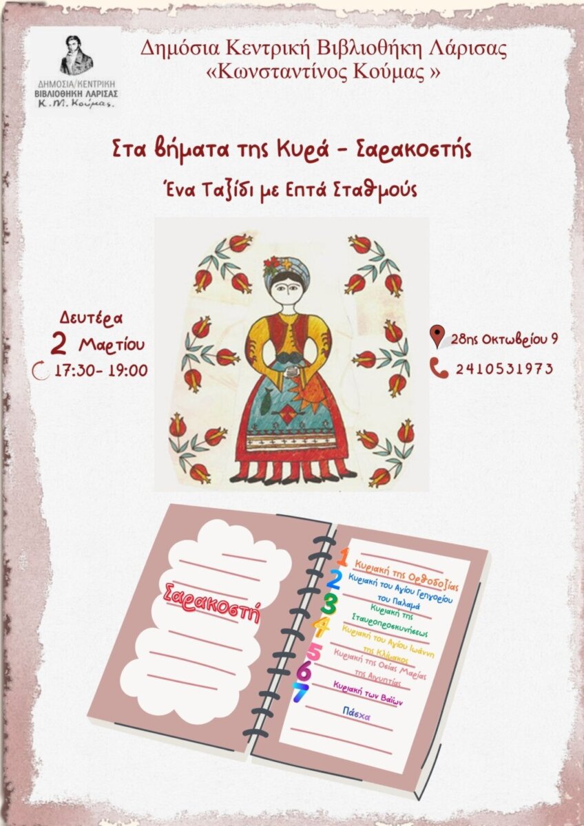 Μία ξεχωριστή δράση με τη συμμετοχή παιδιών Δημοτικού θα πραγματοποιηθεί στο πλαίσιο της Μεγάλης Σαρακοστής, με τίτλο «Στα Βήματα της Κυρά-Σαρακοστής: Ένα Ταξίδι με Επτά Σταθμούς».