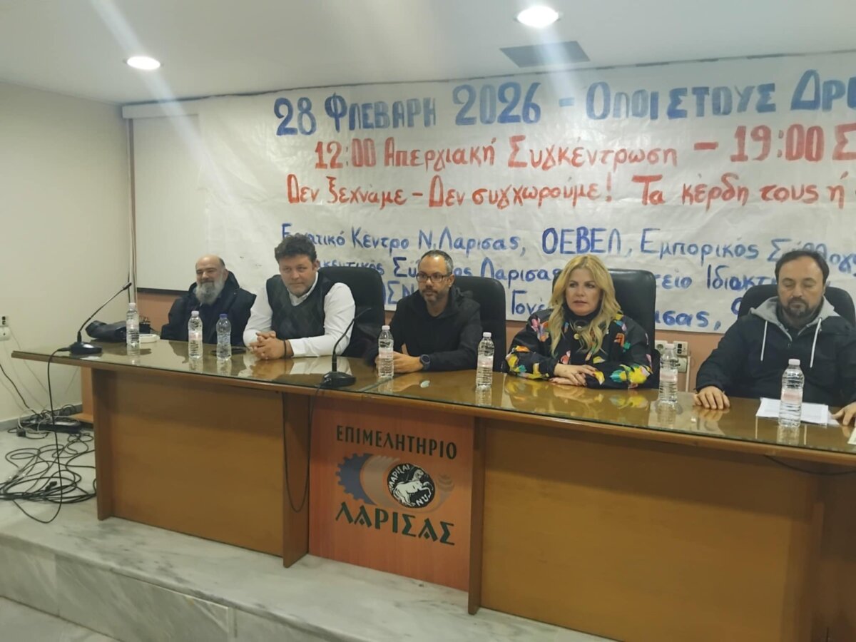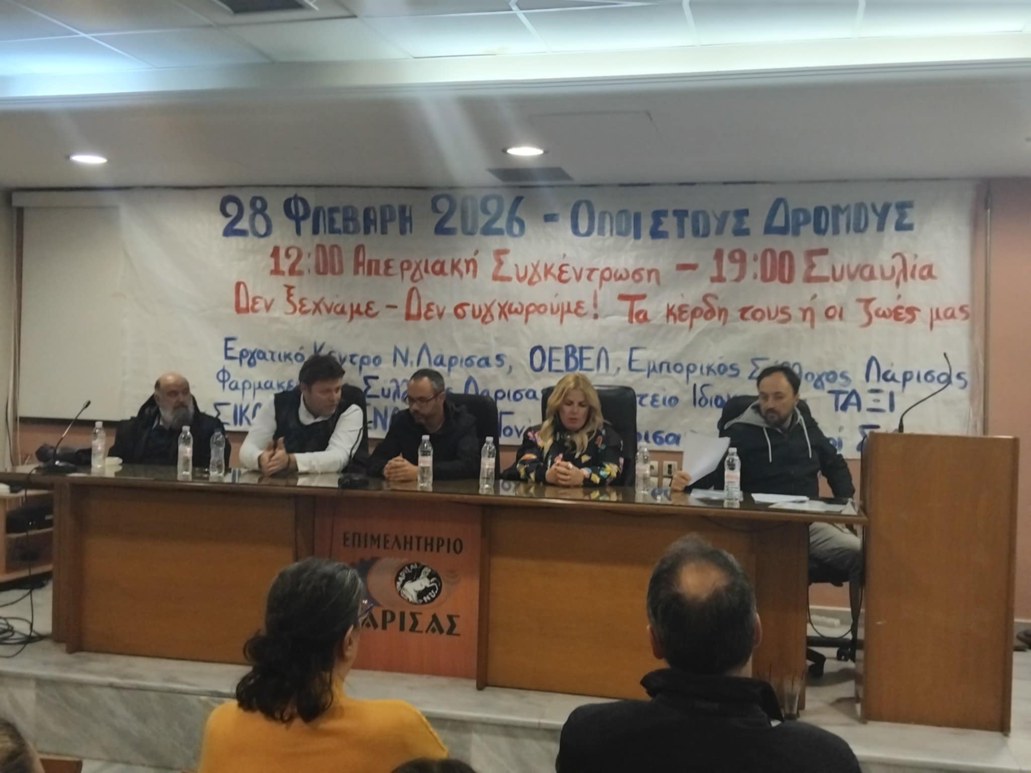 Πραγματοποιήθηκε το απόγευμα της Τρίτης, στην ισόγεια αίθουσα του Επιμελητηρίου Λάρισας, σύσκεψη φορέων της πόλης με αντικείμενο την οργάνωση της μεγάλης απεργιακής συγκέντρωσης του Σαββάτου 28 Φεβρουαρίου, με αφορμή τη συμπλήρωση τριών ετών από το σιδηροδρομικό δυστύχημα των Τεμπών.