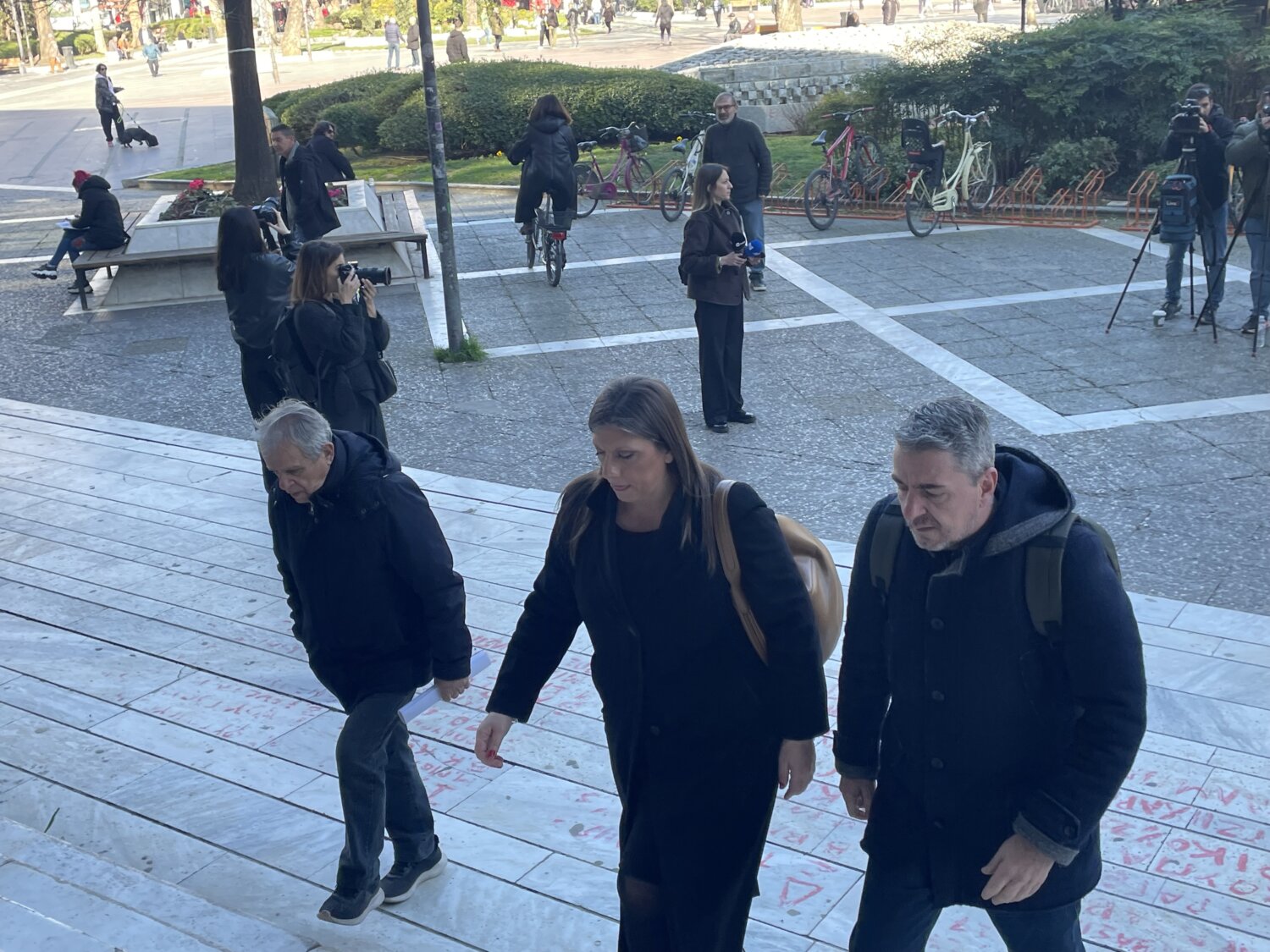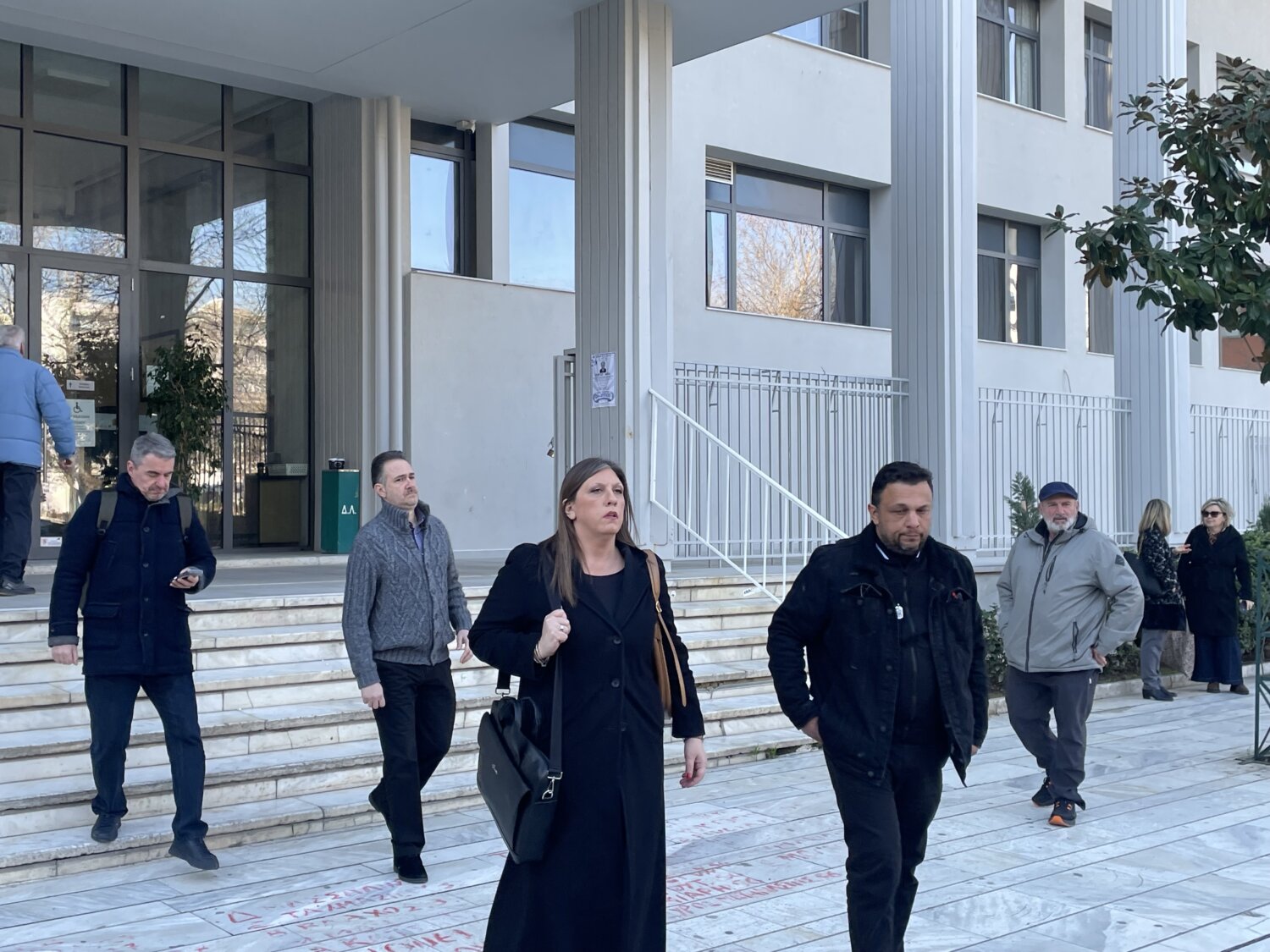 Λίγο μετά τις 10 το πρωί η πρόεδρος της Πλεύσης Ελευθερίας, Ζωή Κωνσταντοπούλου, βρέθηκε έξω από το Δικαστικό Μέγαρο της Λάρισας, προχωρώντας σε δηλώσεις αναφορικά με την υπόθεση, σημειώνοντας επίσης ότι είναι παράνομη η εντολή της Εισαγγελέως Λάρισας, για την εκταφή του Ντένις Ρούτσι.