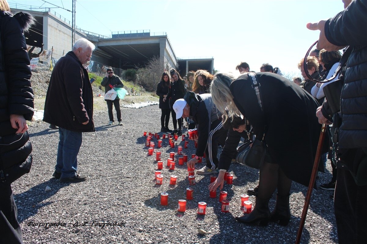 Τελέστηκε τρισάγιο από τους ιερείς του Αγίου Γεωργίου και της Αγίας Παρασκευής Γόννων, πατέρες Βασίλειο Τάσιο και Χρήστο Ψαχούλα, ενώ την ήδη φορτισμένη συγκινησιακά ατμόσφαιρα έκαναν πιο βαριά τα σφυρίγματα των διερχόμενων εκείνη την ώρα τρένων που ένωναν τη φωνή τους με αυτή των πολιτών κάθε ηλικίας που αφήνοντας ένα λουλούδι κι ανάβοντας ένα κεράκι στα μνημεία, ζητούσαν το αυτονόητο : Αλήθεια και Δικαιοσύνη…!