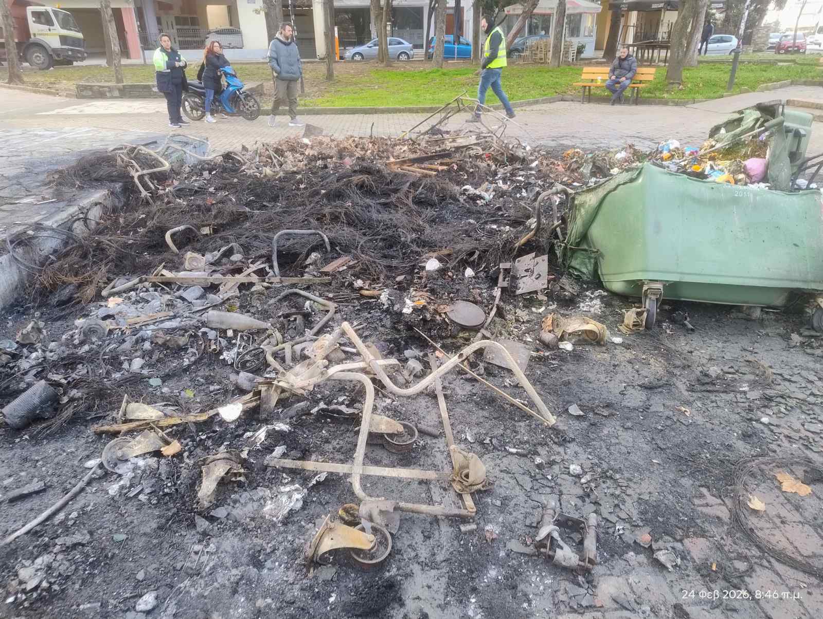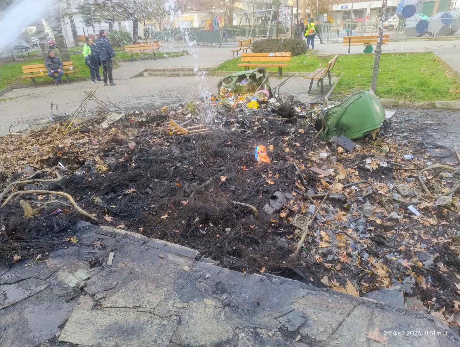 Τα συνεργεία του Δήμου κινητοποιήθηκαν άμεσα, προχώρησαν στην απομάκρυνση των κατεστραμμένων κάδων, στον καθαρισμό του χώρου και στις απαραίτητες εργασίες αποκατάστασης, ώστε η πλατεία να παραδοθεί εκ νέου στους πολίτες σε πλήρη λειτουργικότητα.