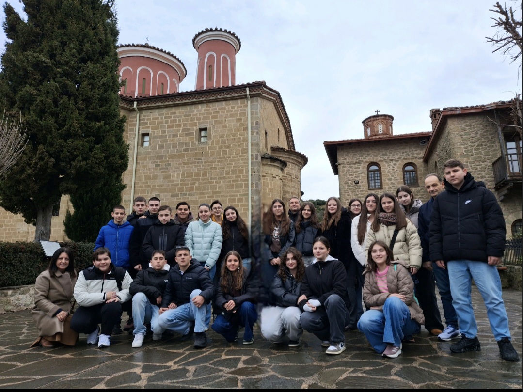 Οι μαθητές και οι μαθήτριες αρχικά επισκέφτηκαν την Ιερά Μονή Αγίου Στεφάνου Μετεώρων, όπου και είχαν την ευκαιρία να ακούσουν πληροφορίες για την ιστορία της Μονής και των Μετεώρων γενικότερα. Προσκύνησαν την αγία κάρα του αγίου Χαραλάμπους που είναι και ο προστάτης της Ιεράς Μονής και έψαλλαν ύμνους, ενώ επισκέφτηκαν και το Σκευοφυλάκιο.