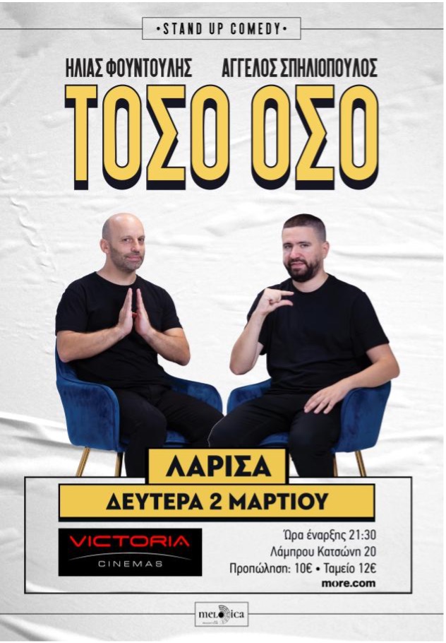 Εισιτήρια εδώ: https://www.more.com/gr-el/tickets/theater/toso-oso-fountoulis-spiliopoulos/