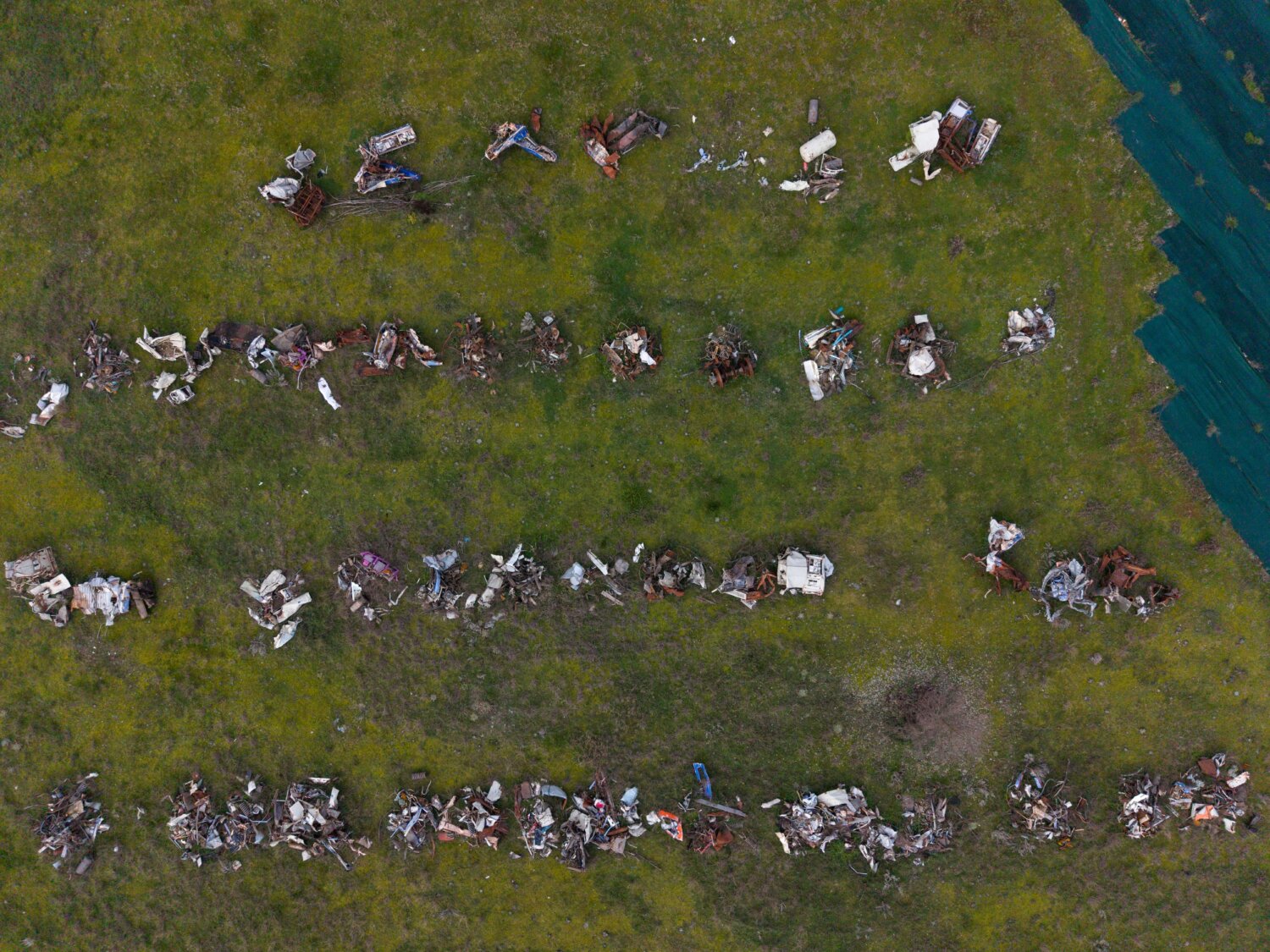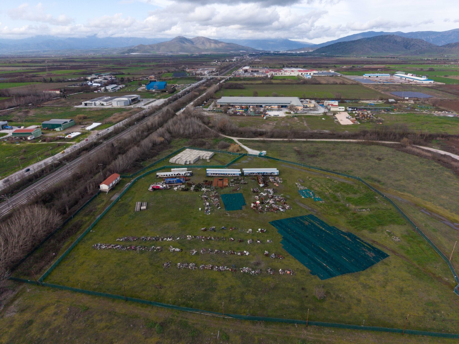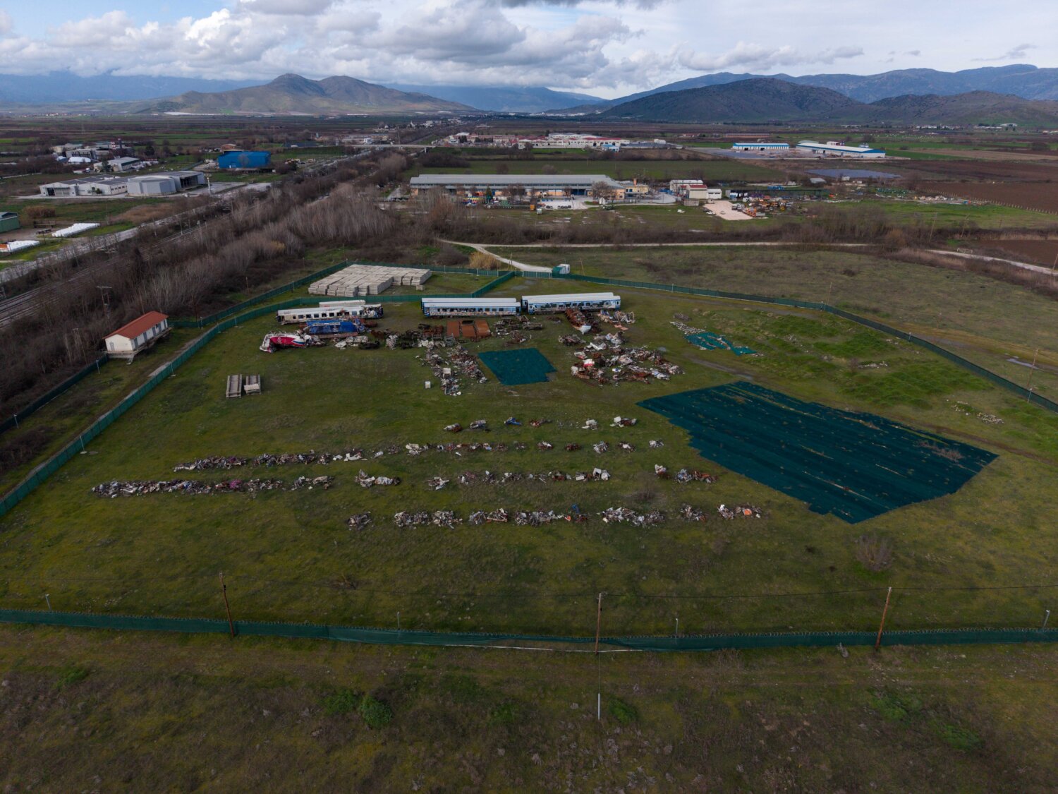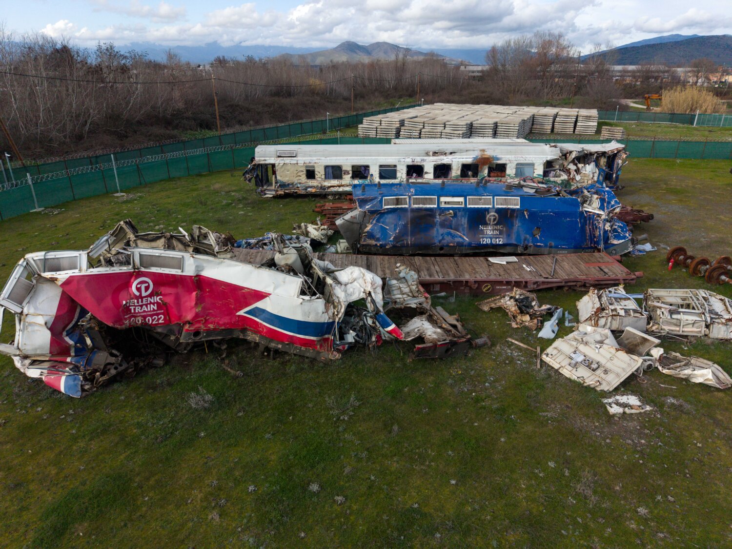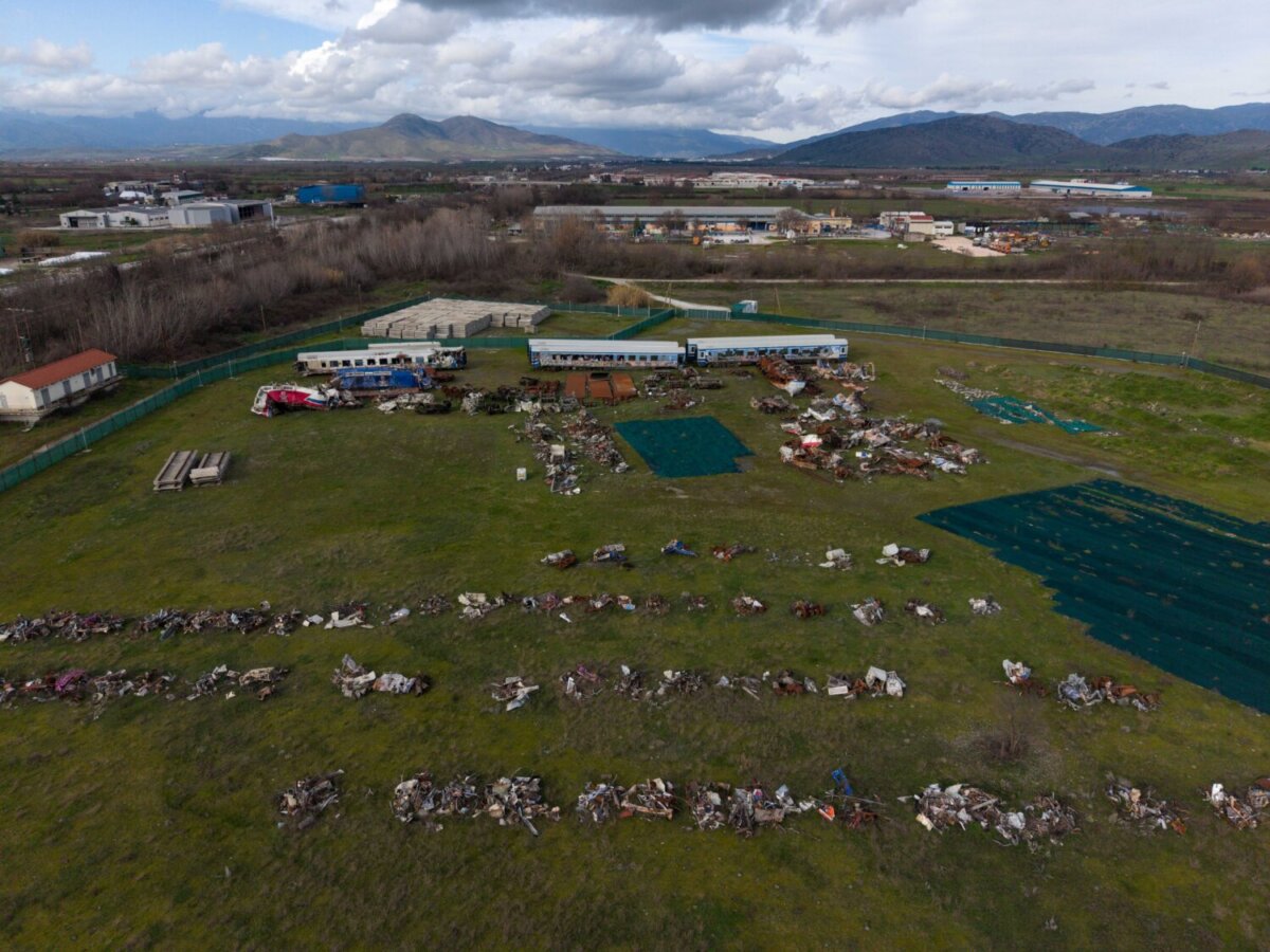 Ότι απέμεινε από τη σύγκρουση των δύο αμαξοστοιχιών, της επιβατικής και της εμπορικής, που στοίχισε τη ζωή σε 57 συνανθρώπους μας, οι οποίοι ταξίδευαν εκείνο το βράδυ με το τρένο, έχει μεταφερθεί από το σημείο του πολύνεκρου δυστυχήματος σε χώρο παρακείμενο της εθνικής οδού, στο ύψους του Κουλουρίου Λάρισας.