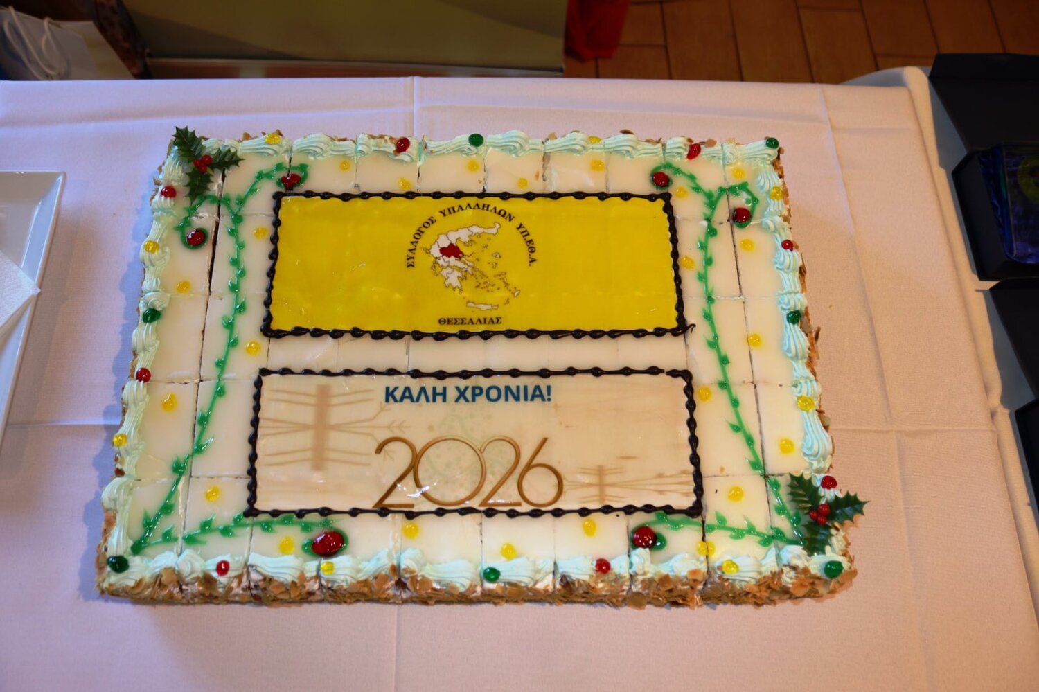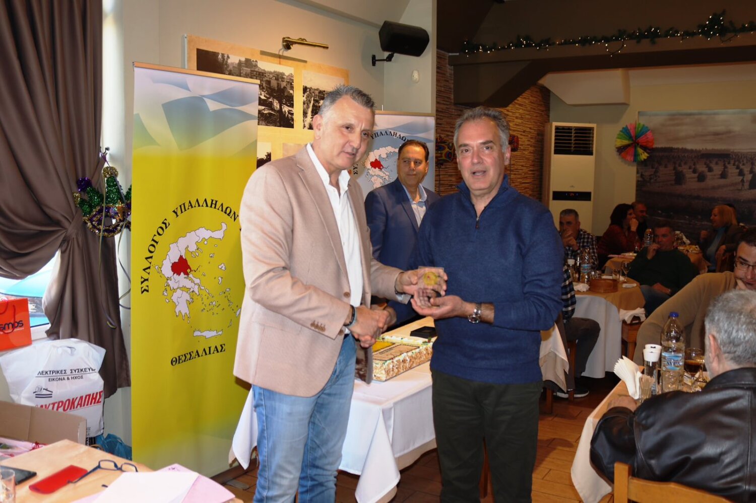 «Σε μια κατάμεστη από κόσμο αίθουσα, ο Πρόεδρος του Συλλόγου Απόστολος Σκορδούλης, αφού καλωσόρισε τους παρευρισκόμενους εκ μέρους του ΔΣ, τους ενημέρωσε για τα τρέχοντα θέματα του Υπουργείου μας, που βρίσκονται σε εξέλιξη και με το τέλος της ενημέρωσης, πραγματοποίησε την κοπή της βασιλόπιτας, μαζί με όλα τα μέλη του ΔΣ.