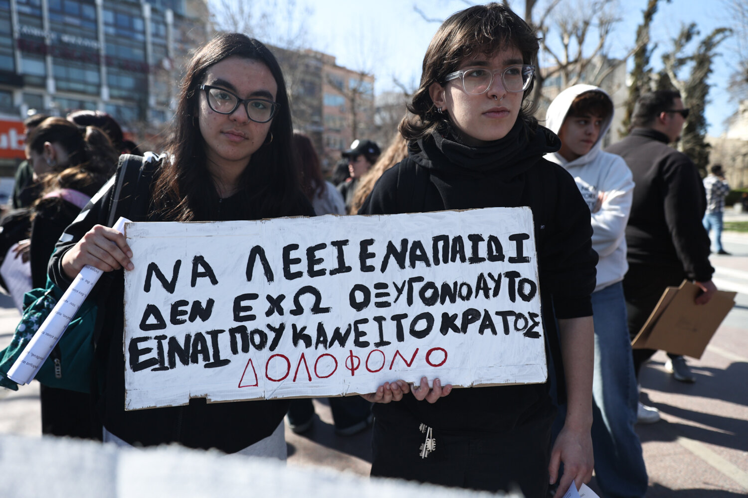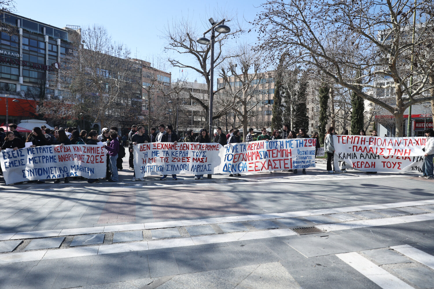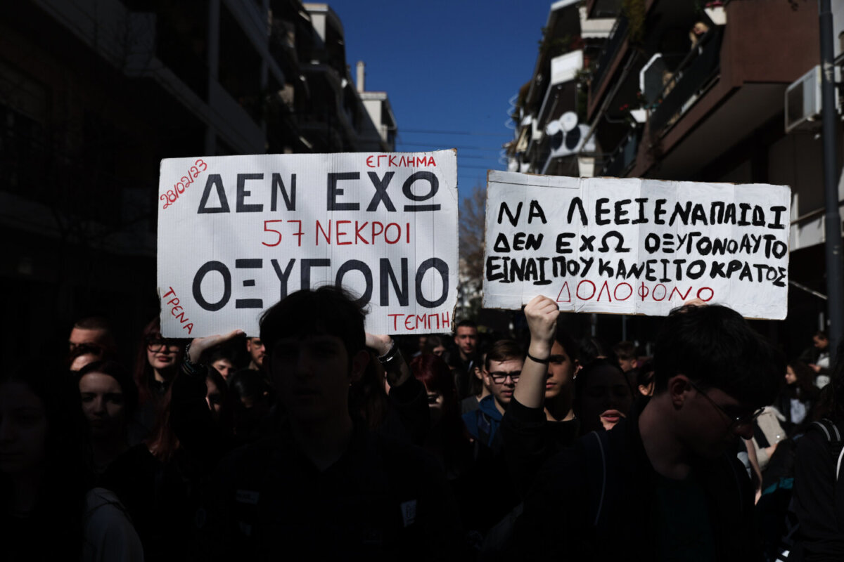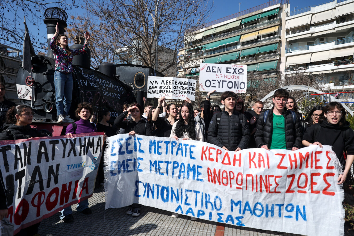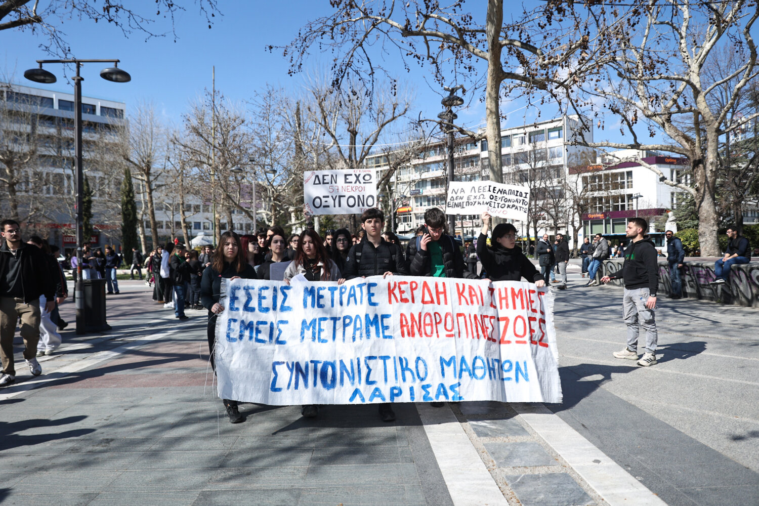 «Να λέει ένα παιδί δεν έχω οξυγόνο, αυτό είναι που κάνει το κράτος δολοφόνο» φώναξαν μαθητές και φοιτητές από την Κεντρική Πλατεία της Λάρισας, δύο μέρες πριν την συμπλήρωση τριών ετών από την σιδηροδρομική τραγωδία των Τεμπών.