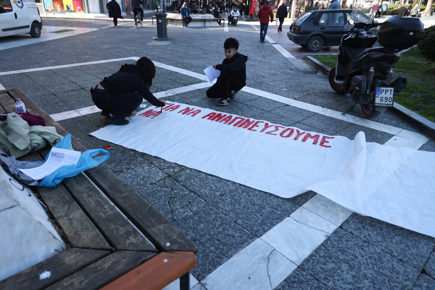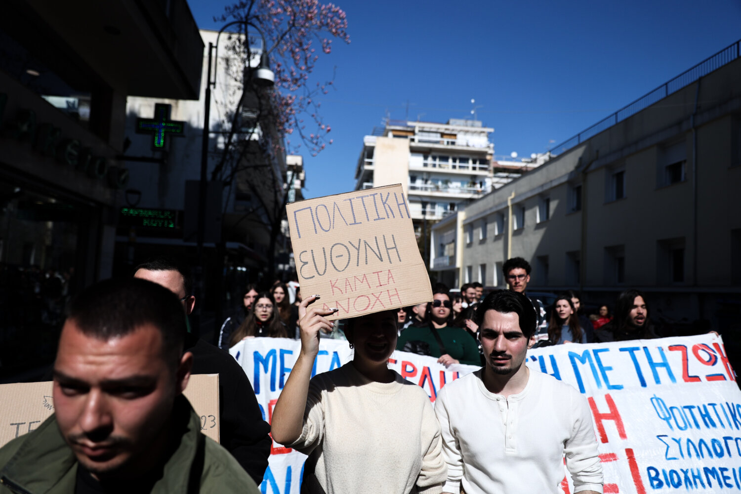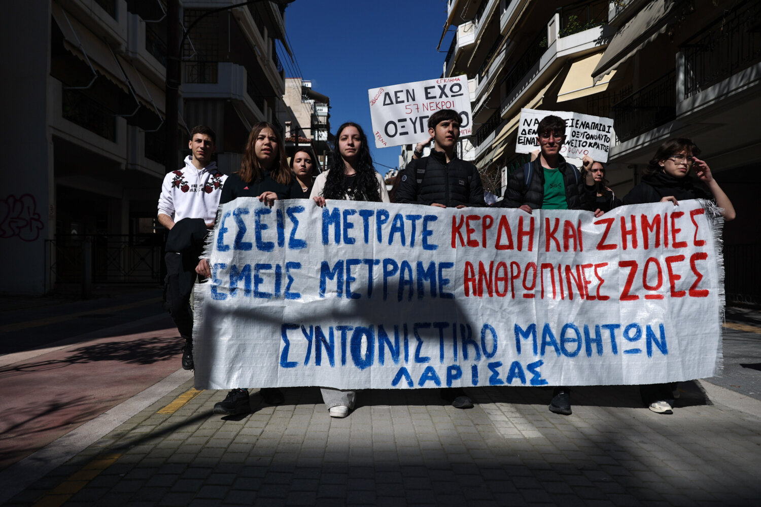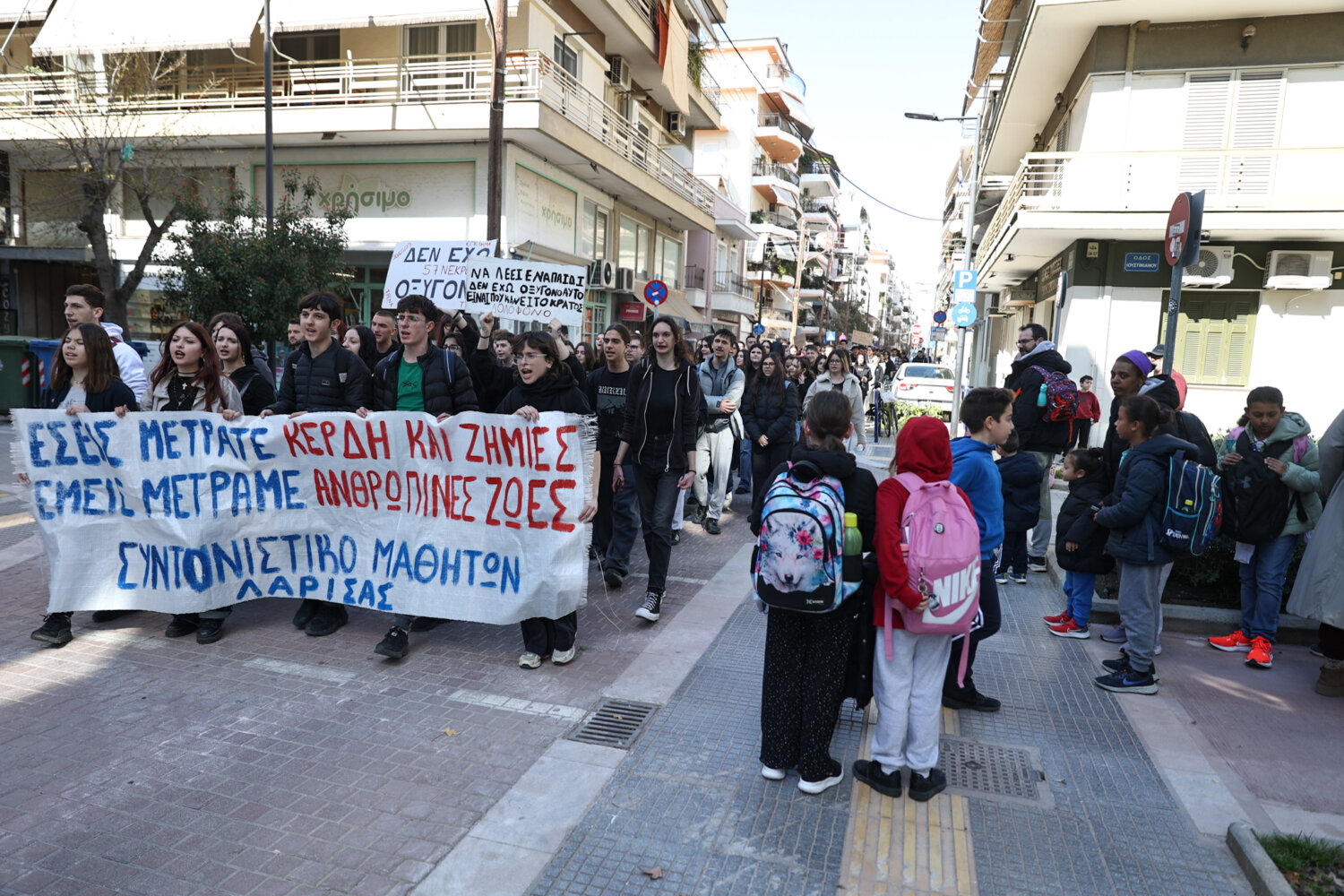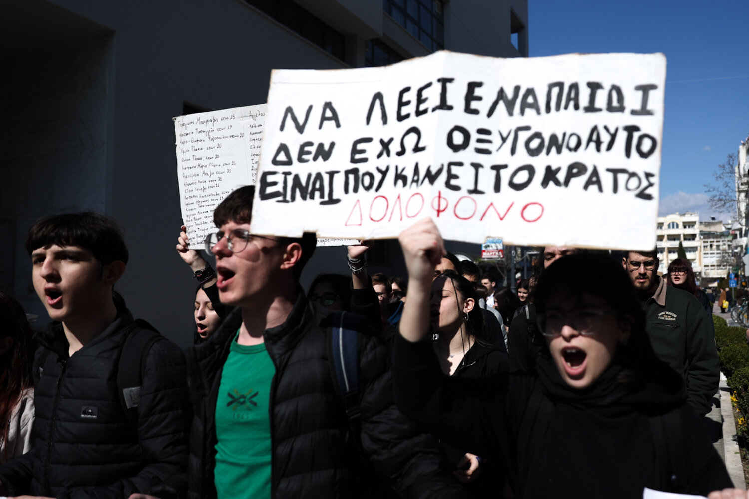 «Να λέει ένα παιδί δεν έχω οξυγόνο, αυτό είναι που κάνει το κράτος δολοφόνο» φώναξαν μαθητές και φοιτητές από την Κεντρική Πλατεία της Λάρισας, δύο μέρες πριν την συμπλήρωση τριών ετών από την σιδηροδρομική τραγωδία των Τεμπών.