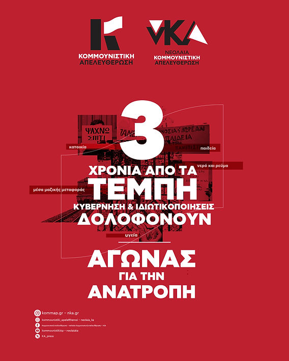 Σε ανακοίνωση της Κομμουνιστικής Απελευθέρωσης και της νεολαίας Κομμουνιστική Απελευθέρωση-νΚΑ για τα 3 χρόνια από το έγκλημα των Τεμπών αναφέρονται: