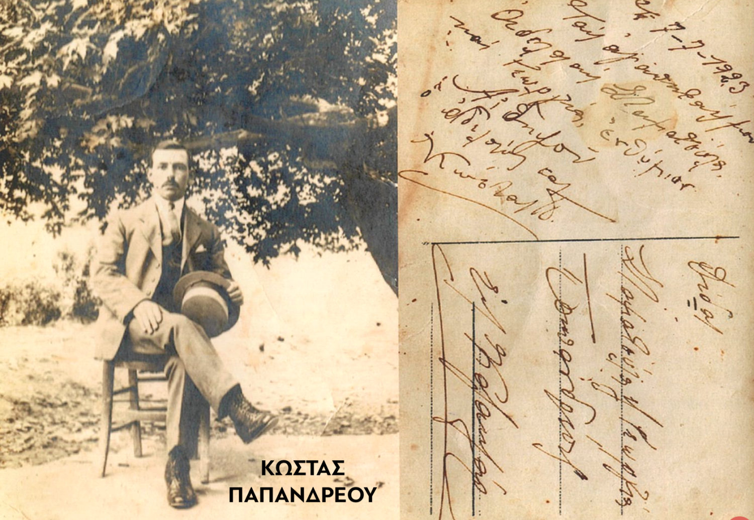 Ο Κώστας Παπανδρέου γεννήθηκε και μεγάλωσε στο Καζακλάρ, τον σημερινό Αμπελώνα. Από μικρός εργαζόταν στη γη και στην κτηνοτροφία μαζί με τον πατέρα του. Εντάχθηκε στις γραμμές του ΚΚΕ και στοχοποιήθηκε για τη δράση του. Συνδικαλιστικά δούλεψε στο σωματείο Σερβιτόρων. Φυλακίστηκε από το καθεστώς Μεταξά και στη συνέχεια παραδόθηκε στα κατοχικά στρατεύματα. Από τα Πυροβολικά Λάρισας μεταφέρθηκε στο Χαϊδάρι. Η τελευταία φορά που τον είδαν οι δικοί του ήταν λίγο πριν τη μεταγωγή του. Την 1η Μάη 1944 στάθηκε κι αυτός μπροστά στο εκτελεστικό απόσπασμα, μαζί με τους συντρόφους του, βαδίζοντας προς τον τόπο της θυσίας με το κεφάλι ψηλά.