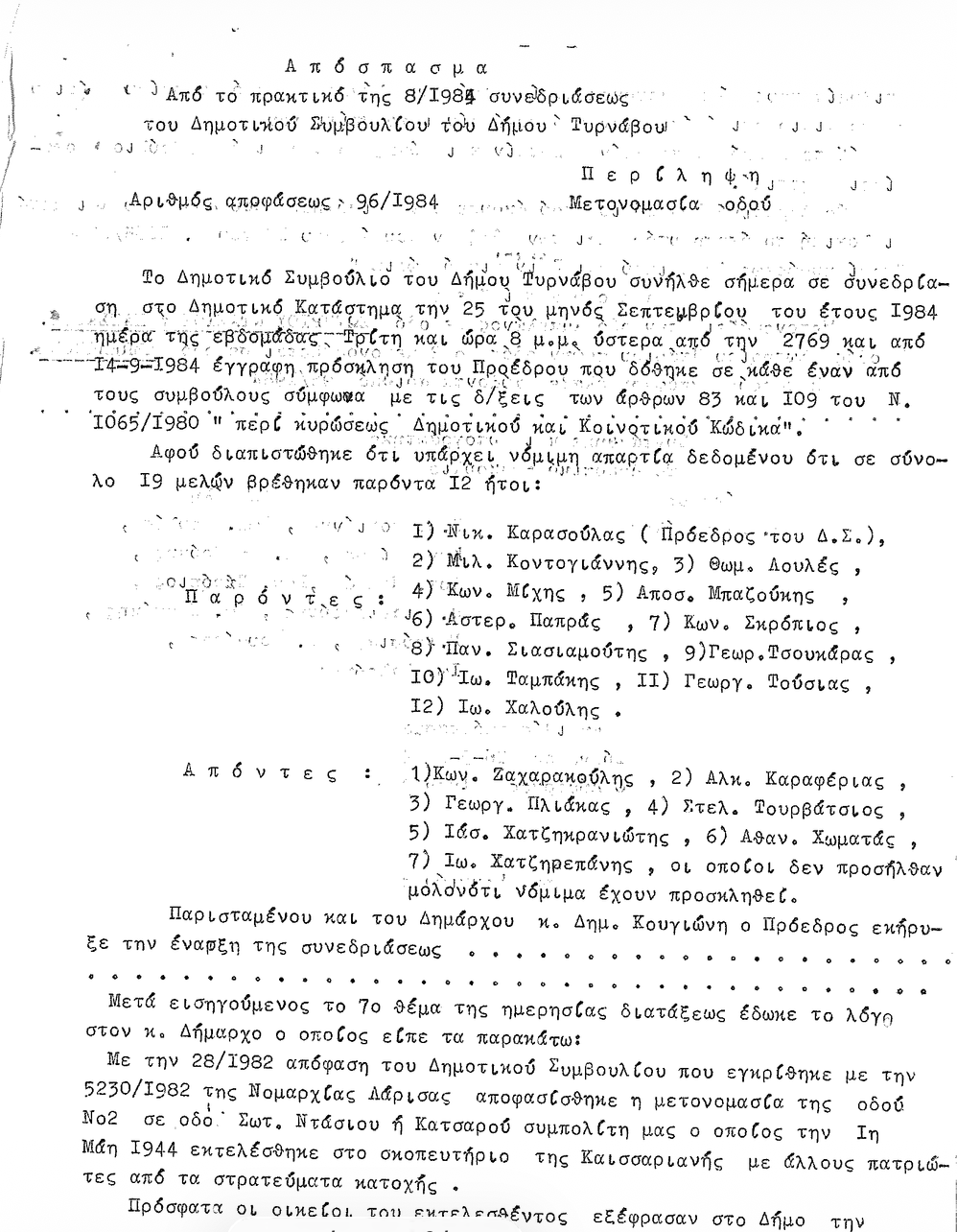 Δεκάδες οι αγωνιστές που έδωσαν τα ζωή τους για να ξημερώσουν καλύτερες μέρες στον τόπο μας απ’ όλη την επαρχία Τυρνάβου, και πόσοι ακόμα ταλαιπωρήθηκαν για χρόνια στις φυλακές, στις εξορίες, στην πολιτική προσφυγιά.