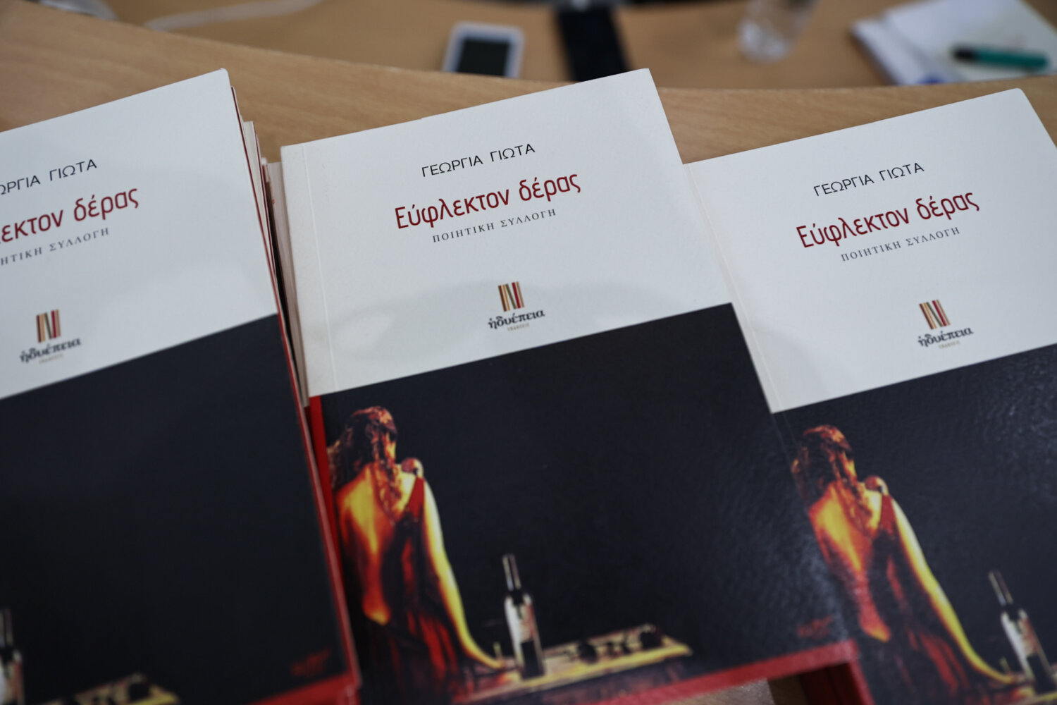 Πραγματοποιήθηκε το απόγευμα της Παρασκευής, στο Χατζηγιάννειο Πνευματικό Κέντρο, η παρουσίαση της ποιητικής συλλογής «Εύφλεκτον Δέρας» της φιλολόγου και ποιήτριας Γεωργίας Γιώτα.