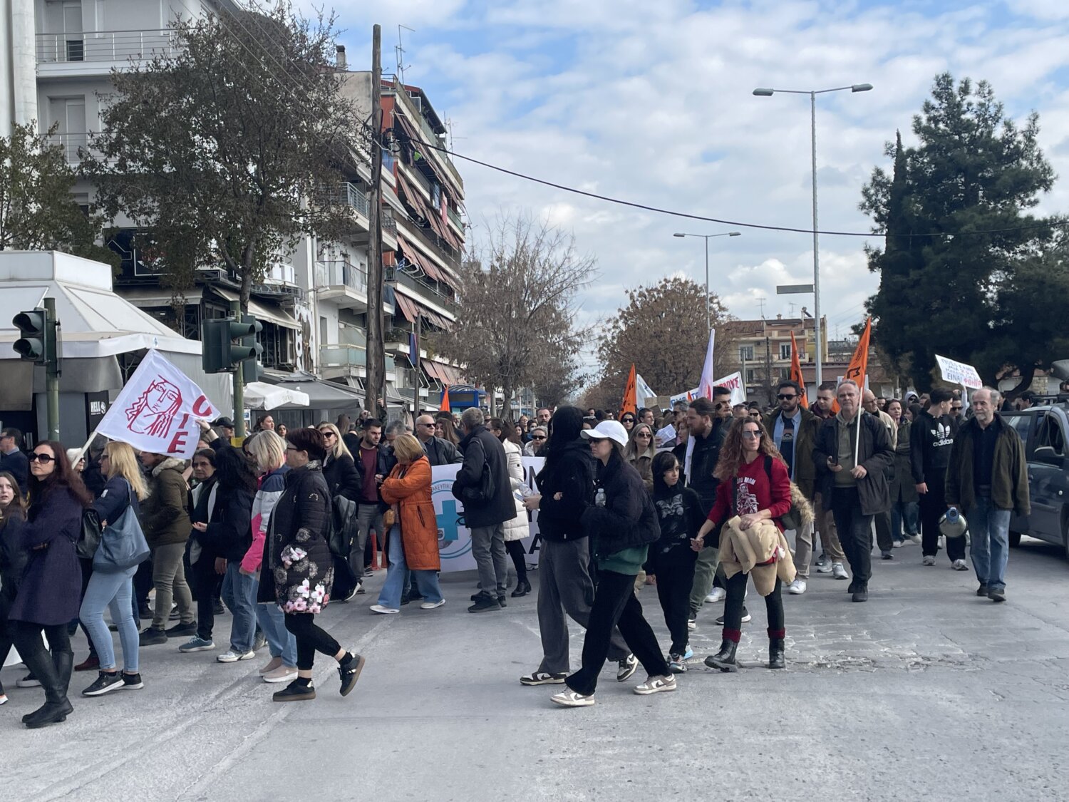 Οι διαδηλωτές πέρασαν από μπροστά – στέλνοντας αντιπολεμικό μήνυμα – και στη συνέχεια κατευθύνθηκαν προς το κέντρο της πόλης μέσω της οδού Καραθάνου.