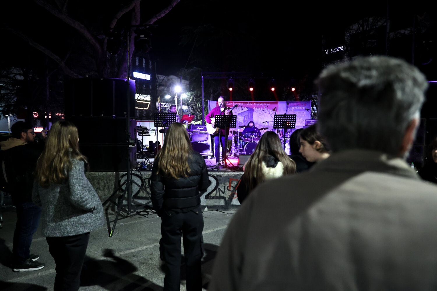 Συναυλία μνήμης για το σιδηροδρομικό δυστύχημα των Τεμπών πραγματοποιήθηκε το απόγευμα του Σαββάτου στην Κεντρικη Πλατεία της Λάρισας.