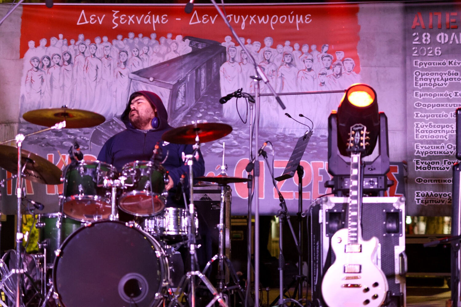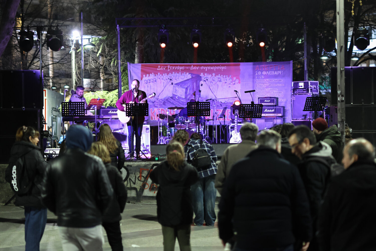 Η «μαύρη» επέτειος της συμπλήρωσης τριών ετών από την τραγωδία που στοίχισε τη ζωή σε 57 ανθρώπους συγκέντρωσε πλήθος κόσμο στην πλατεία της πόλης, όπου μουσικά σχήματα και καλλιτέχνες της Λάρισας, έδωσαν μέσα από τη μουσική το στίγμα της οργής και της απαίτησης δικαιοσύνης.