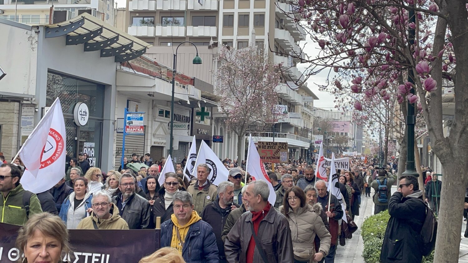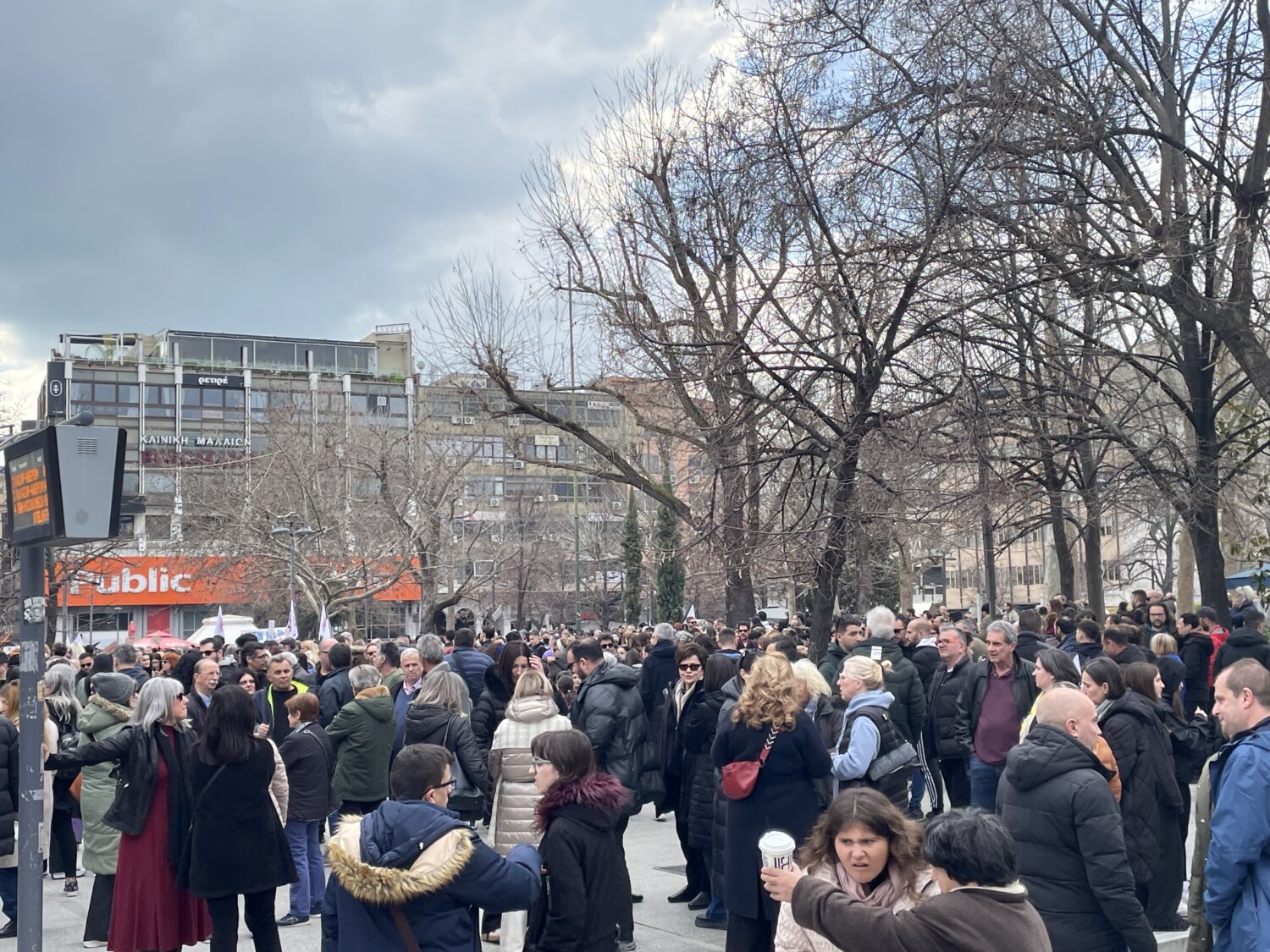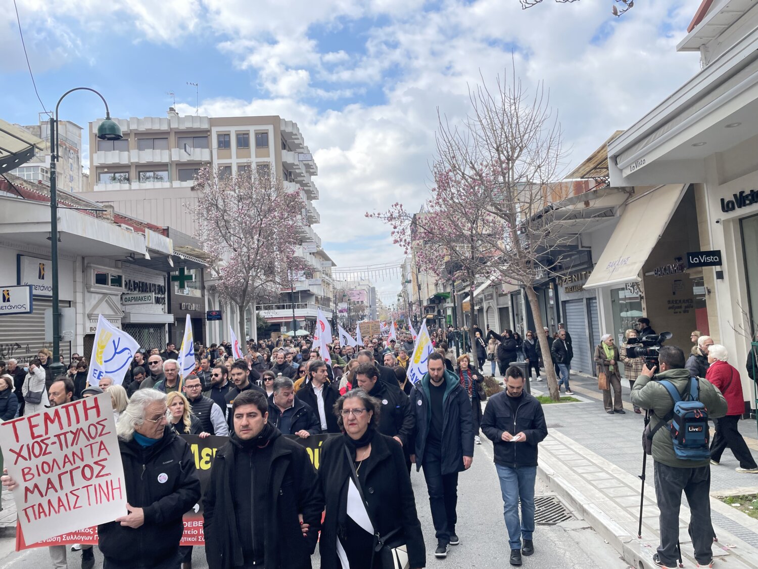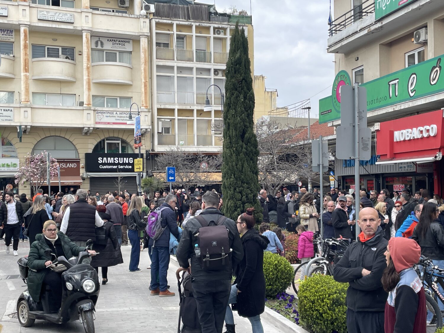 Λίγο μετά τη μία το μεσημέρι ξεκίνησε η πορεία στους δρόμους της Λάρισας, με τη μαζική συμμετοχή πολιτών που ζητούν δικαιοσύνη για την σιδηροδρομική τραγωδία των Τεμπών.