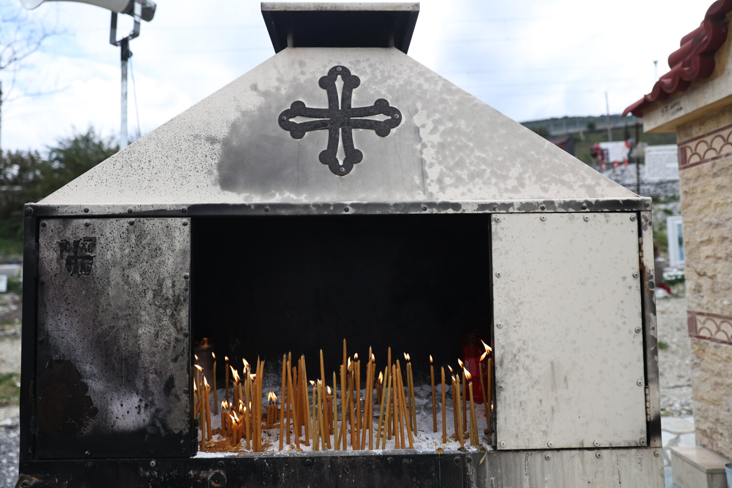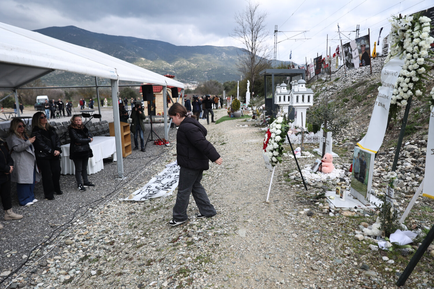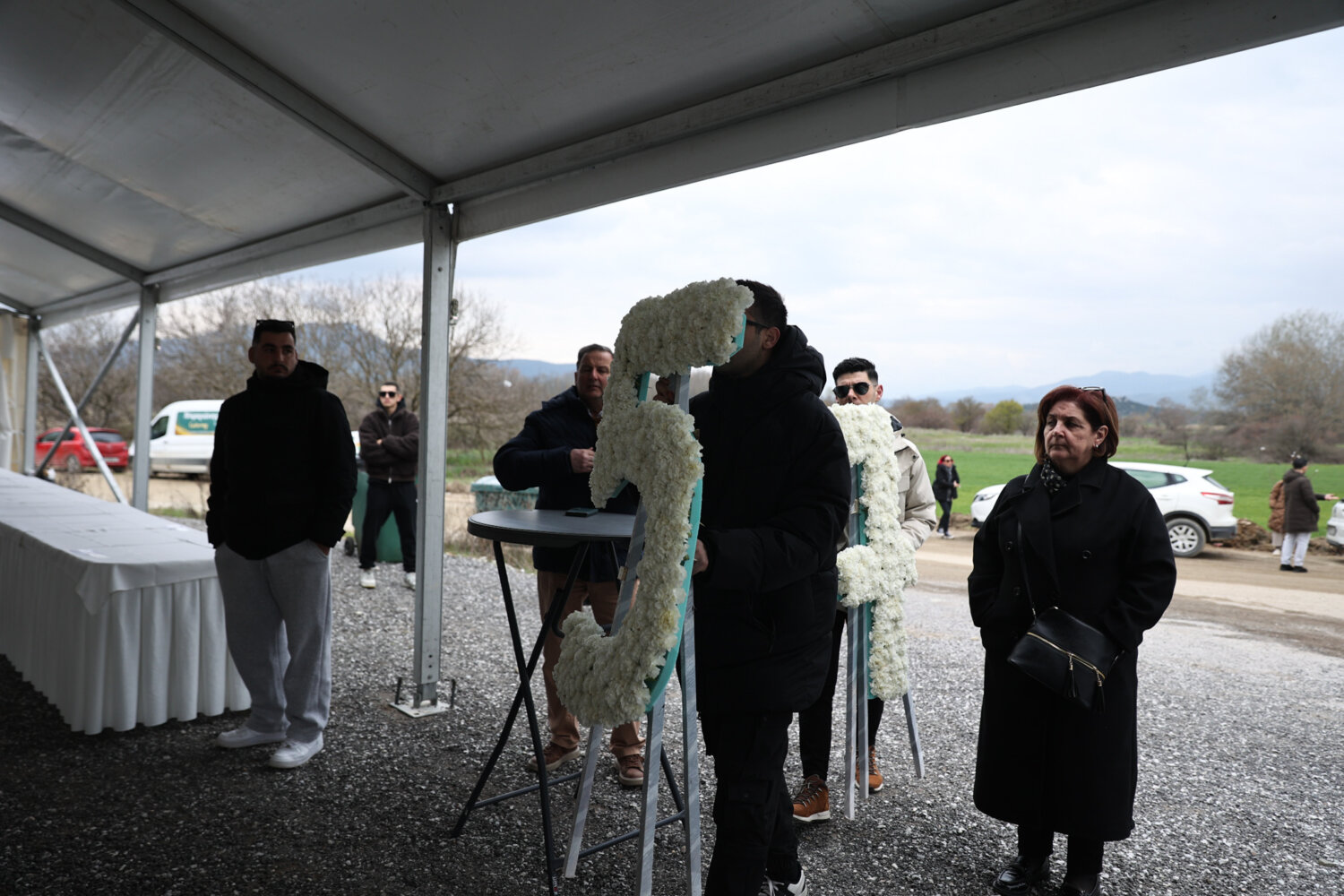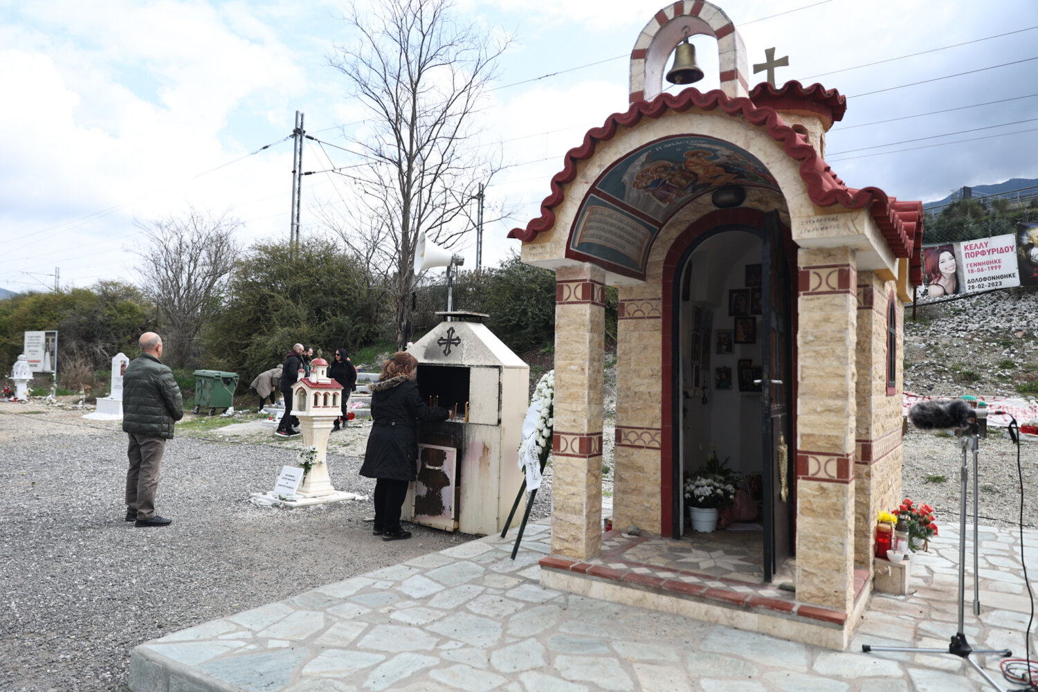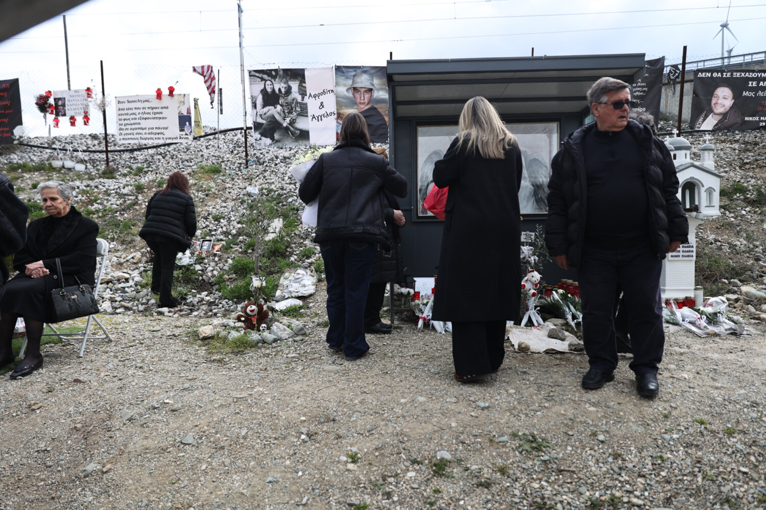 Οι συγγενείς φτάνουν συνεχώς την τελευταία ώρα και αφήνουν ένα λουλούδι στο χώρο που βρίσκεται το αυτοσχέδιο μνημείο ή το όνομα του δικού τους ανθρώπου.