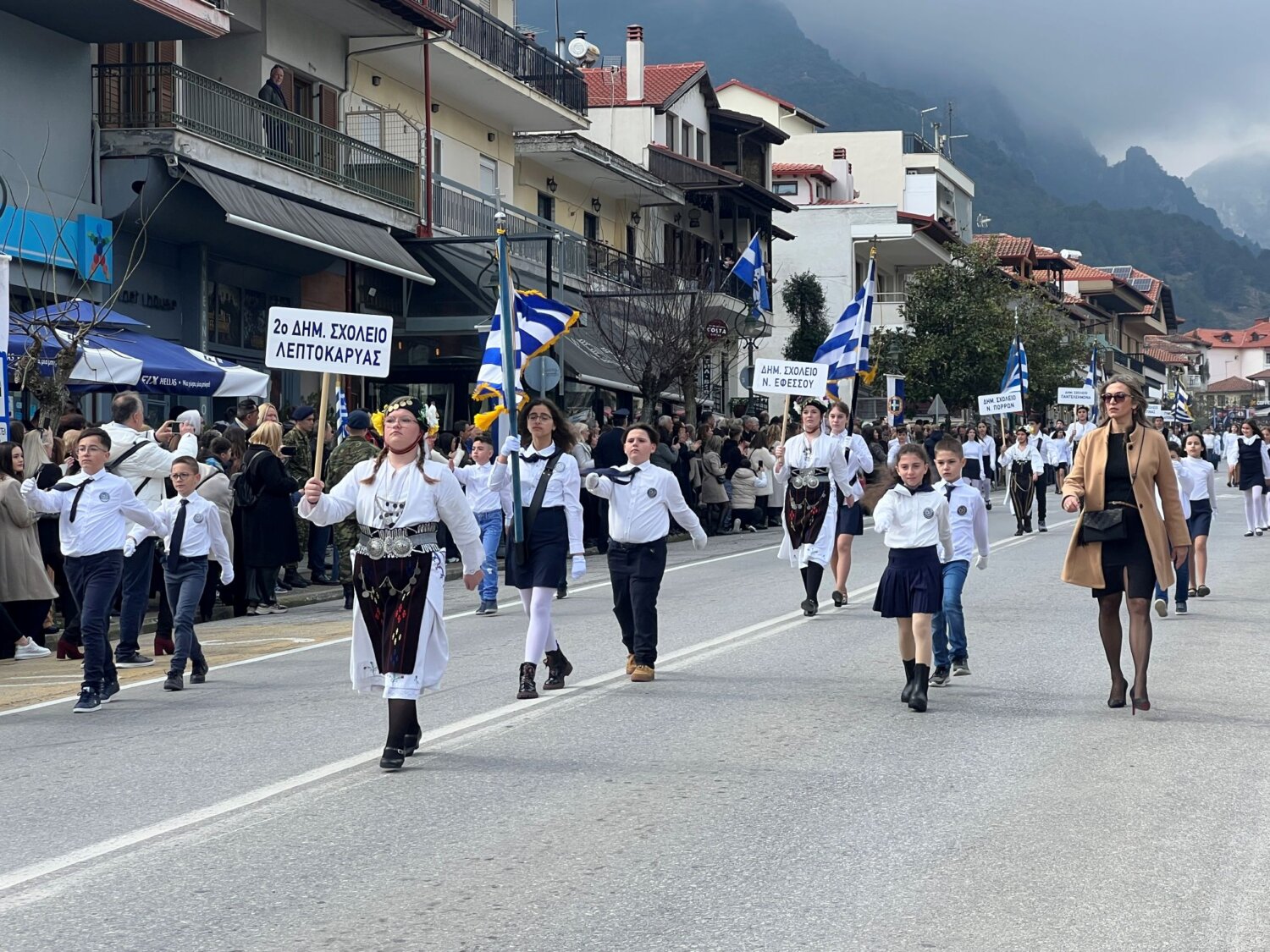 Ακολούθησε η μεγάλη μαθητική παρέλαση στην κεντρική λεωφόρο Αγίου Νικολάου, στην οποία συμμετείχαν όλα τα σχολεία του Δήμου Δίου-Ολύμπου, πλαισιωμένη από τους ήχους της Φιλαρμονικής Ορχήστρας Δίου-Ολύμπου «Οδυσσέας Σβάρνας», η παρέλαση του Πολιτιστικού Ομίλου Λιτοχώρου με παραδοσιακή εμφάνιση καθώς και η στρατιωτική παρέλαση των αγημάτων της 24ης Τεθωρακισμένης Ταξιαρχίας Λιτοχώρου.