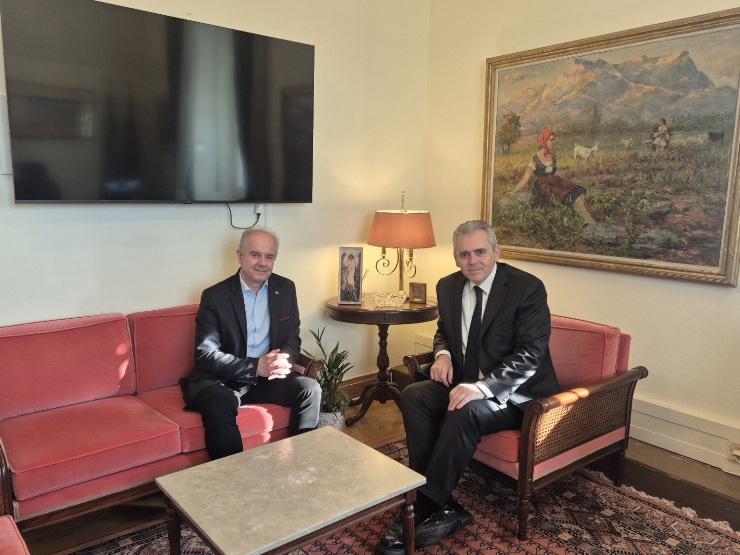 Συνάντηση εργασίας πραγματοποίησε ο Δήμαρχος Τεμπών κ. Γιώργος Μανώλης, συνοδευόμενος από τον Αντιδήμαρχο κ. Γεώργιο Νικολάου, στο γραφείο του Γραμματέα της Κοινοβουλευτικής Ομάδας της Νέας Δημοκρατίας στη Βουλή.