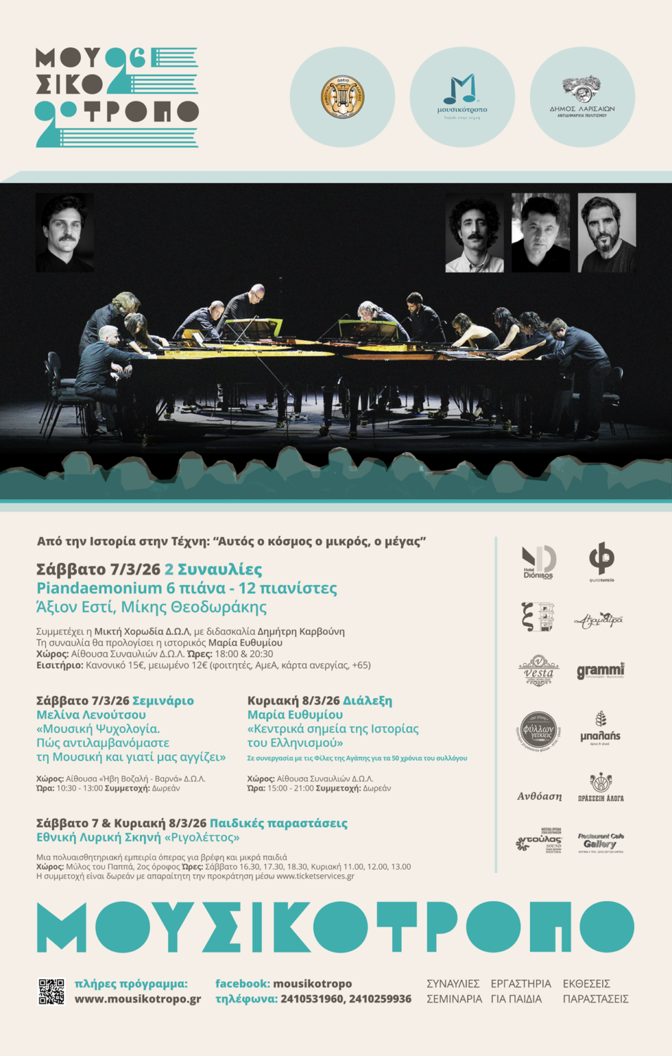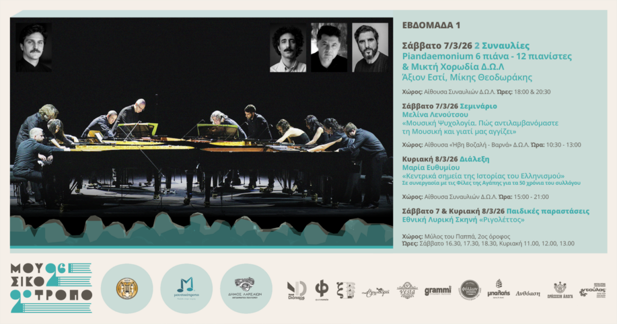 Το εμβληματικό «Άξιον Εστί» (1960) του Μίκη Θεοδωράκη, πάνω στην ομώνυμη ποιητική σύνθεση του νομπελίστα ποιητή Οδυσσέα Ελύτη, παρουσιάζεται σε μια μοναδική εκδοχή για δώδεκα πιανίστες σε έξι πιάνα από την πιανιστική ορχήστρα Piandaemonium, το Σάββατο 7 Μαρτίου 2026, με δύο συναυλίες, στις 18:00 και στις 20:30, στην αίθουσα Συναυλιών Δημοτικού Ωδείου Λάρισας.