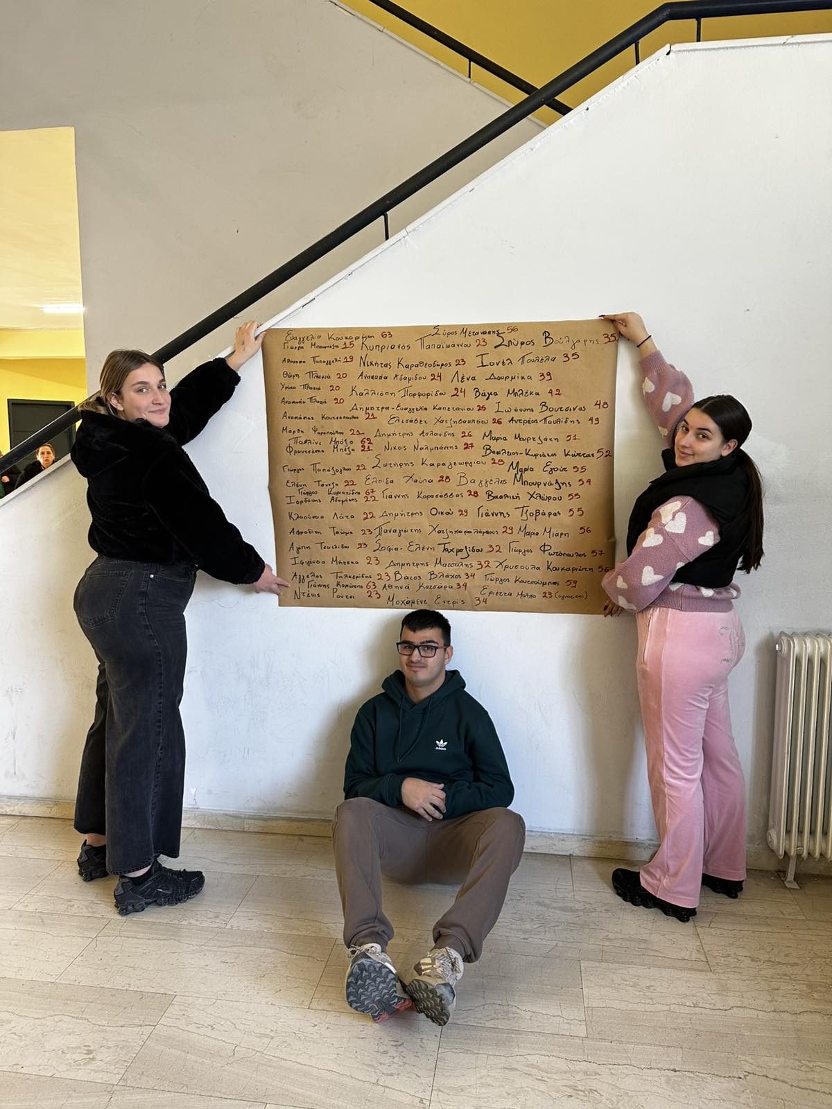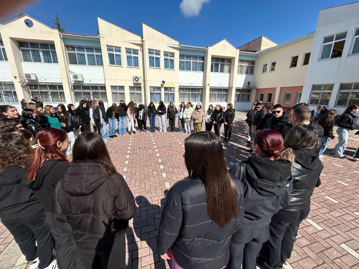 «Στο σχολείο μας την Παρασκευή 27-02-2025, παραμονή του τραγικού δυστυχήματος των Τεμπών, αφιερώθηκε χρόνος όπου μαθητές και εκπαιδευτικοί σχημάτισαν στον αύλειο χώρο ανθρωποσύμβολα με τον αριθμό των θυμάτων καθώς και το σύμβολο του πένθους.