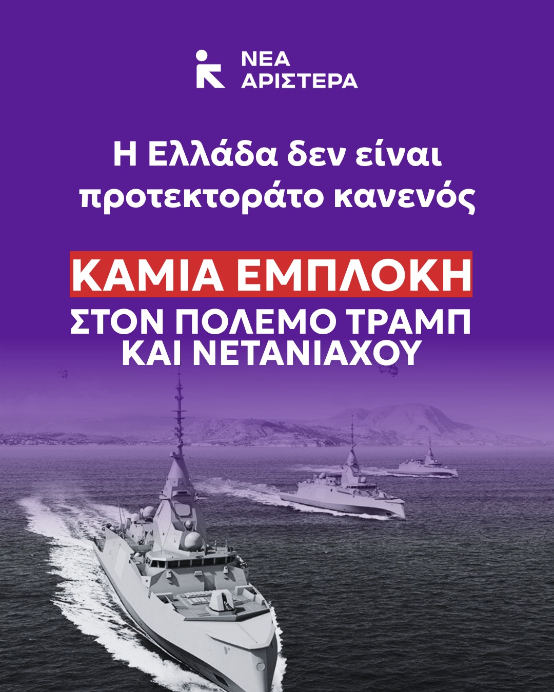 Καμία στρατιωτική συμμετοχή και καμία εμπλοκή στον πόλεμο Τραμπ και Νετανιάχου».