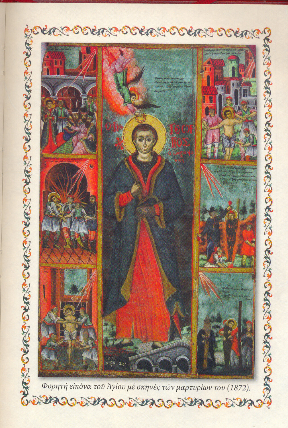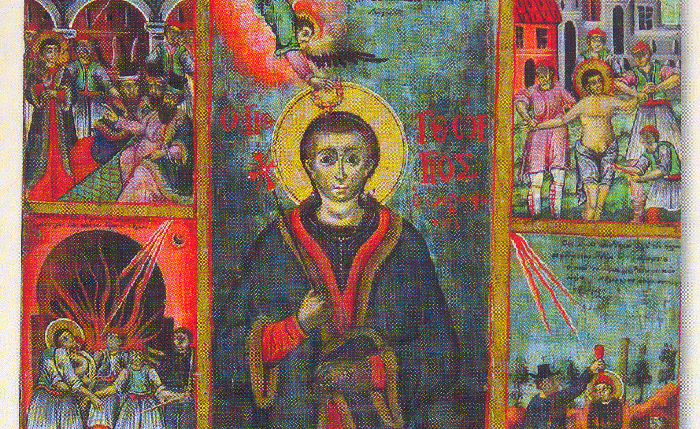 Λίγα λόγια για τον άγιο :Ο Άγιος Νεομάρτυς Γεώργιος ανήκε σε ανώτερη κοινωνικά και οικονομικά οικογένεια της Ραψάνης. Ο πατέρας του ονομαζόταν Χατζηλάσκαρης και ήταν υιός του Αναστασίου Ψάλτου. Ο Γεώργιος παρουσιάζεται από την παράδοση ως τρόφιμος και απόφοιτος της ανωτέρου επιπέδου Σχολής Ραψάνης, στην οποία χρημάτισε διδάσκαλος . Σύμφωνα με τις υπάρχουσες πληροφορίες, η ορεινή κωμόπολη της Ραψάνης άκμαζε οικονομικά τον 18ο μ.Χ. αιώνα, όπως και ο Τύρναβος και τα Αμπελάκια. Είχε βιομηχανία, έκανε εξαγωγή εξαίρετου κρασιού και αποτελούσε πόλο έλξεως για τα γύρω χωριά του κάτω Ολύμπου. Ένας από τους Οθωμανούς, κάτοικος της κωμοπόλεως Δερελί (Γόννοι) και οικογενειάρχης, επιθυμώντας ο υιός του να τύχει αξιόλογης παιδείας, τον απέστειλε οικότροφο σε φίλο του που διέμενε στη Ραψάνη. Άρχισε έτσι το τουρκόπουλο να παρακολουθεί και να μαθαίνει τα στοιχειώδη γράμματα μαζί με τα ελληνόπουλα, στα πόδια του γραμματοδιδάσκαλου Γεωργίου. Ο μικρός Αγαρηνός προσαρμόστηκε σύντομα στο κλίμα του σχολείου και συναγωνιζόταν τους συμμαθητές του, ενθαρρυνόμενος και από τον διδάσκαλό του, ίσως τυγχάνοντας από εκείνον και ιδιαίτερης φροντίδας.Με το δεδομένο ότι αιώνες πριν η Ελληνική παιδεία με δυσκολία διαχωριζόταν από τη χριστιανική κατήχηση, ο μικρός αλλοεθνής, συγχρόνως προς την ελληνική εκπαίδευση, λίγο – λίγο αλλά σταθερά επηρεαζόταν από τη χριστιανική πίστη και ζωή. Όπως ήταν επόμενο, όσοι εξοργίσθηκαν αναζήτησαν τον ένοχο της «προσβολής». Τον εντόπισαν στο σχολείο της Ραψάνης. Τον έσυραν δέσμιο για τα περαιτέρω στον Τύρναβο, όπου από το 1811 μ.Χ. είχε έδρα του ο διορισμένος Σατράπης της Θεσσαλίας, Βελή Πασάς, υιός του Αλή Πασά του Τεπελενλή,.