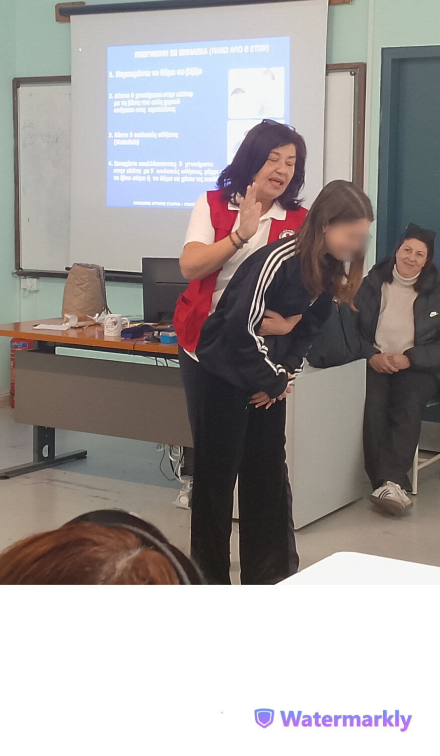 Οι μαθητές του Τομέα Υγείας, Πρόνοιας και Ευεξίας επιμορφώθηκαν στοχευμένα στην Καρδιοαναπνευστική Αναζωογόνηση (ΚΑΡΠΑ) και στις πρώτες βοήθειες για την αντιμετώπιση της πνιγμονής (χειρισμός Heimlich). Μέσα από βιωματικά σενάρια ανέλαβαν τόσο τον ρόλο του διασώστη όσο και του ατόμου που χρήζει βοήθειας, αποκτώντας ουσιαστική εμπειρία και προετοιμαζόμενοι να μεταφέρουν τις γνώσεις τους και σε συμμαθητές τους.