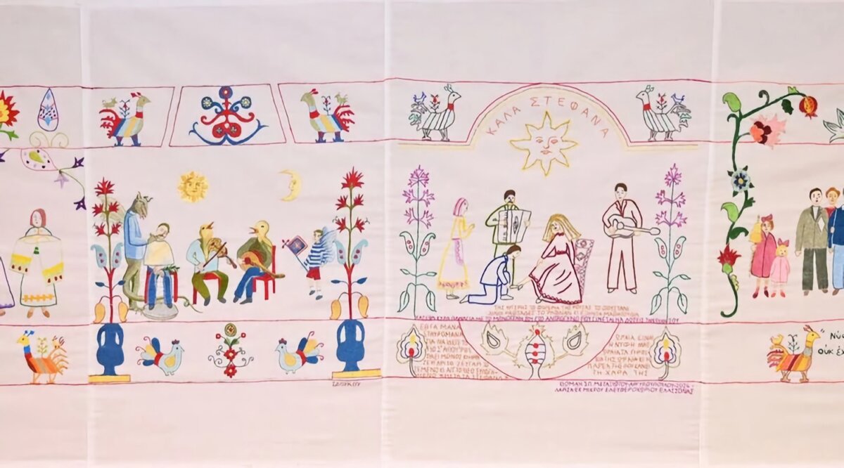 Το αφηγηματικό κέντημα αποτελείται από 16 χειροποίητα τμήματα, καθένα εκ των οποίων εστιάζει σε μια διαφορετική φάση της προετοιμασίας του γάμου, με έμφαση στη βιωματική εμπειρία της νύφης.