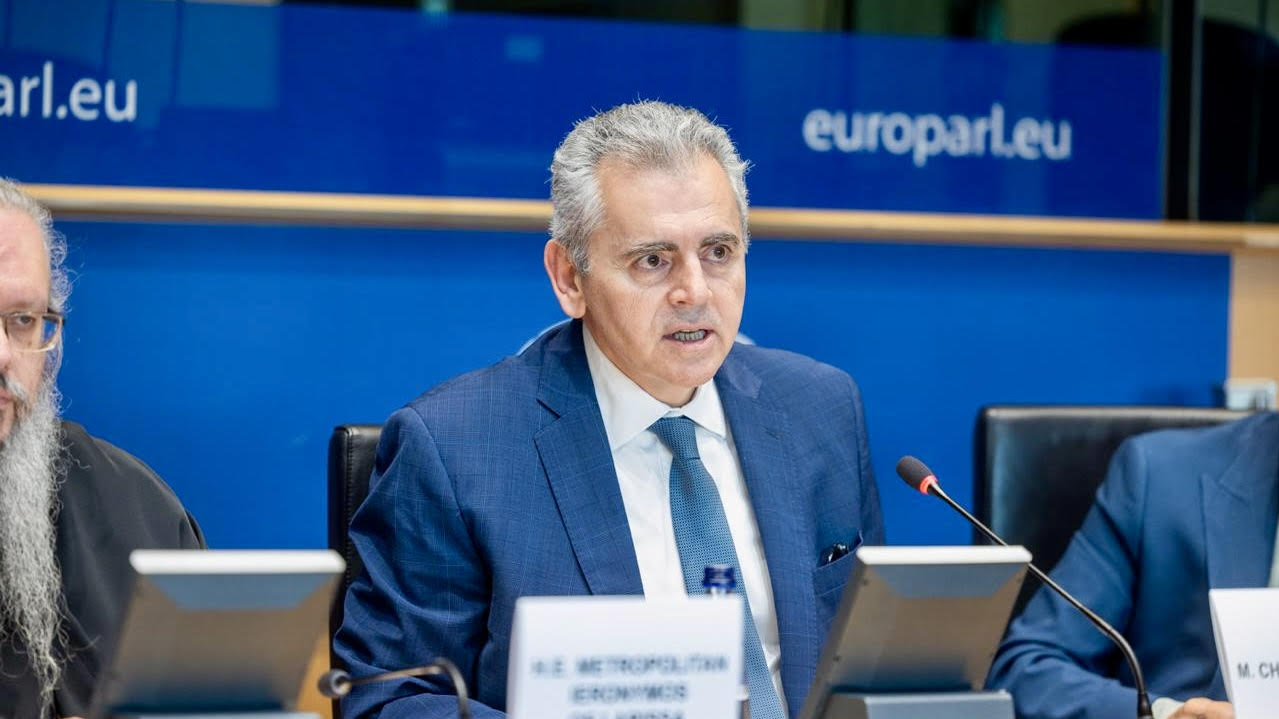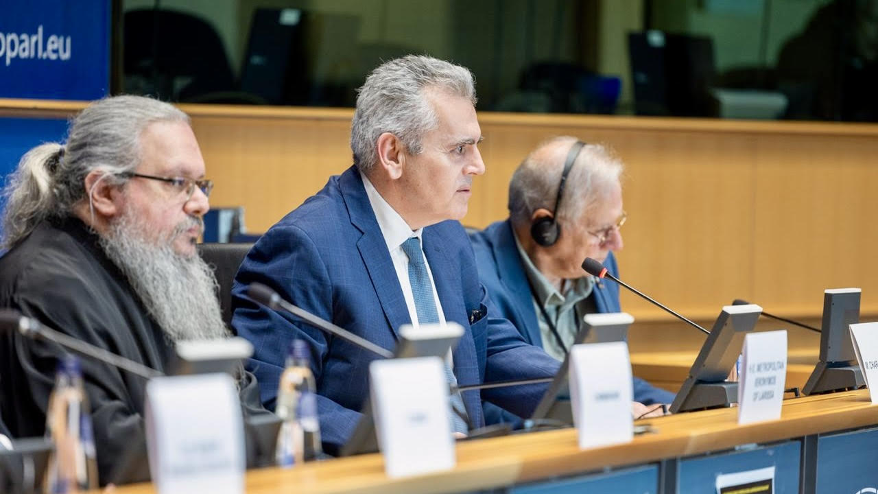 Ο Μάξιμος Χαρακόπουλος με τον Μητροπολίτη Λαρίσης Ιερώνυμο στο ευρωκοινοβούλιο: