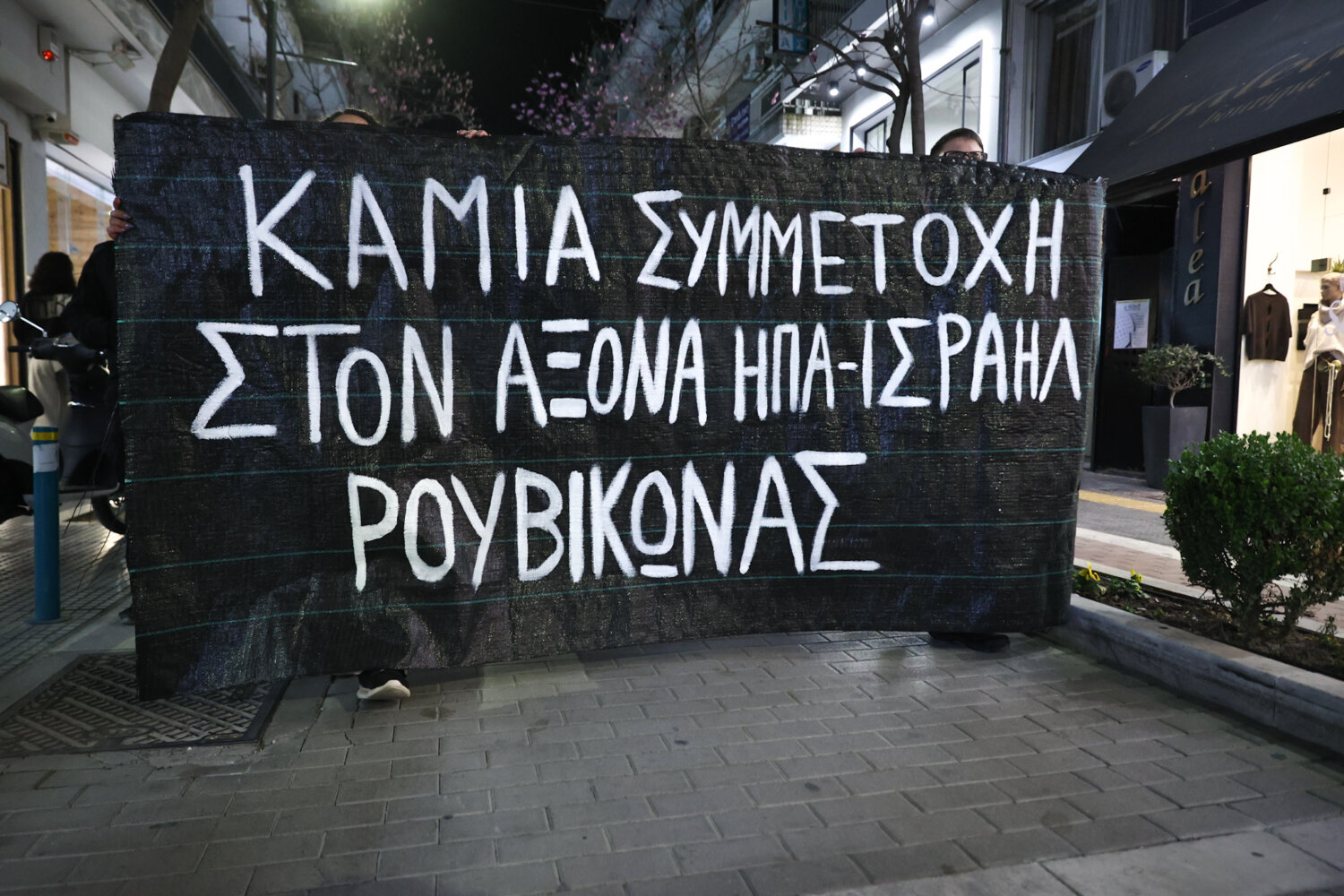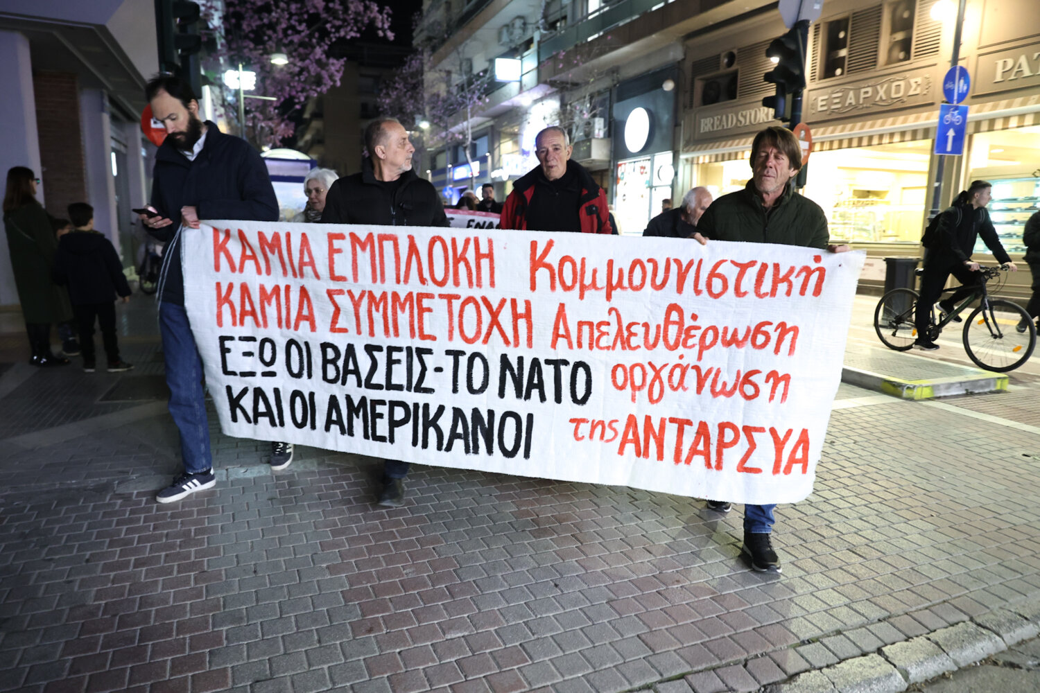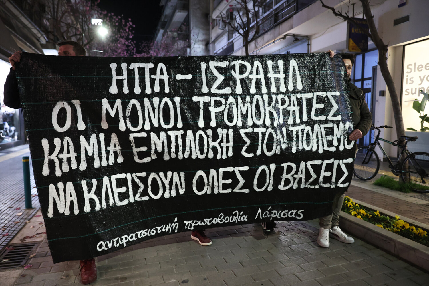 Αντιπολεμική συγκέντρωση και πορεία πραγματοποιήθηκε το απόγευμα της Παρασκευής στην Κεντρική Πλατεία της Λάρισας, έπειτα από κάλεσμα της Αντιρατσιστικής Πρωτοβουλίας Λάρισας.