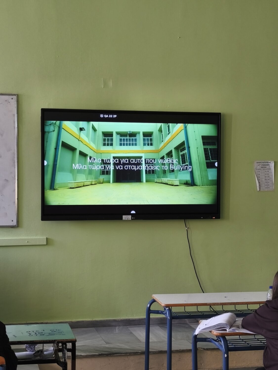 Στο 11ο Γυμνάσιο Λάρισας πραγματοποιήθηκαν βιωματικές δράσεις στο μαθητικό πληθυσμό του σχολείου για το φαινόμενο του Σχολικού Εκφοβισμού.
